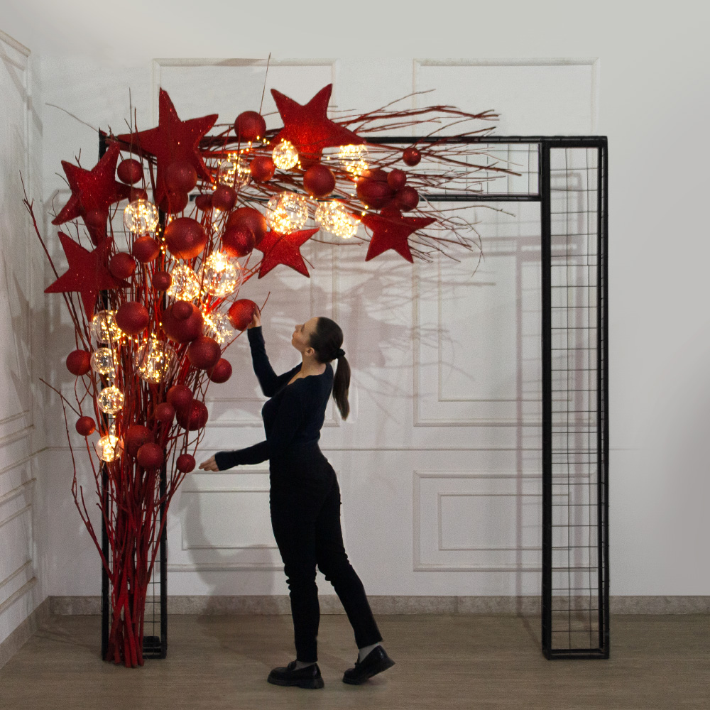 ДЛ186/СВ03т/шар(Пр)(Fix)(F) Декор вход.группы h290см н/прутьях, прист.с красными звездами