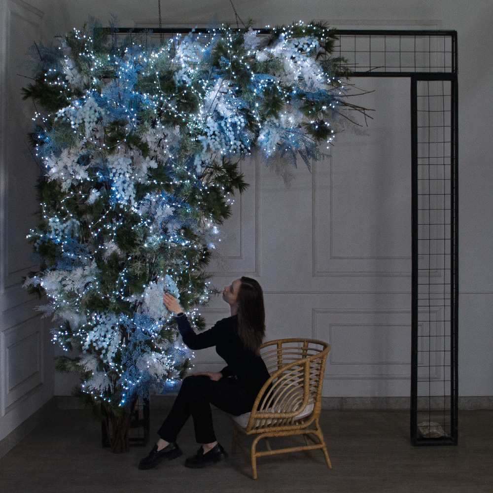 ДЛ187/СВ03х(Пр)(Fix)(F) Декор вход.группы h290см н/прутьях, прист.с гирляндой "Роса",бело-синий