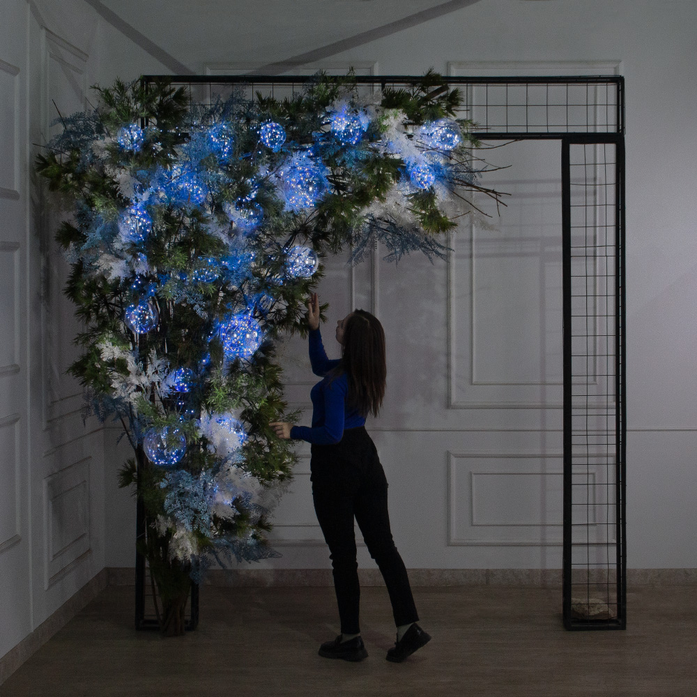 ДЛ188/СВ03с/шар(Пр)(Fix)(F) Декор вход.группы h290см н/прутьях, прист.с гирляндой "Роса",бело-синий