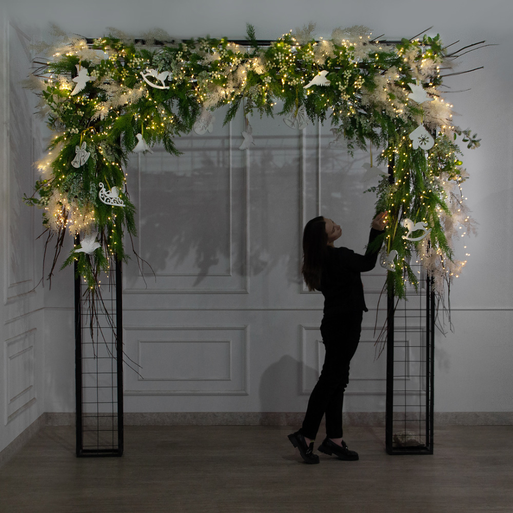 ДЛ192/СВ03т(Пр)(Fix)(F) Декор вход.группы h200см н/прутьях, прист.с гирлянд.Роса, скандинав.стиль