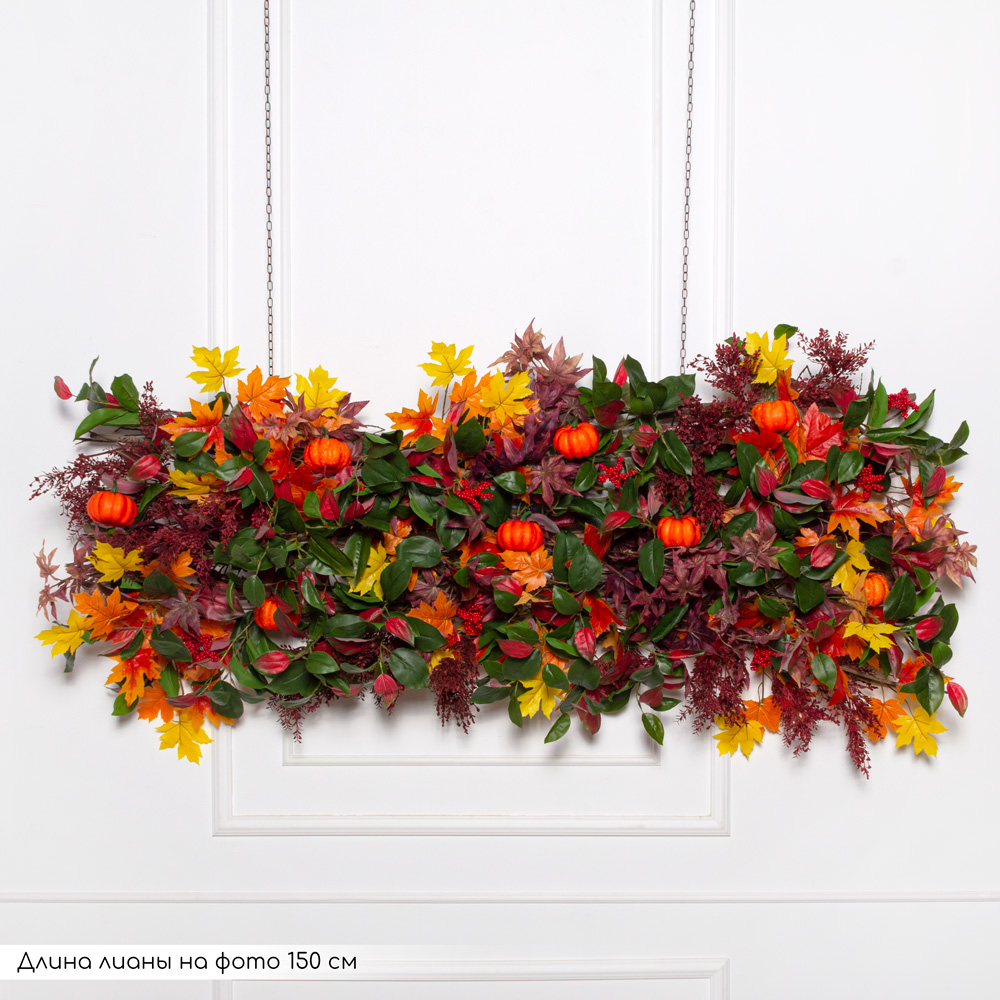 ДЛ82-3(Пр)(F) Декор входной группы осенний с кленом и тыквой L100см, пристенный, зелено-оранжевый