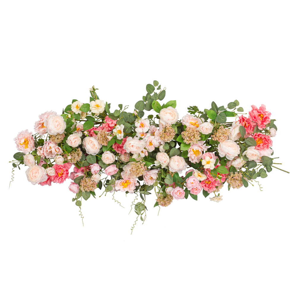 ДЛ83 Декор входной группы цветочный с эвкалиптом L100см, пристенный, нежно-розовый