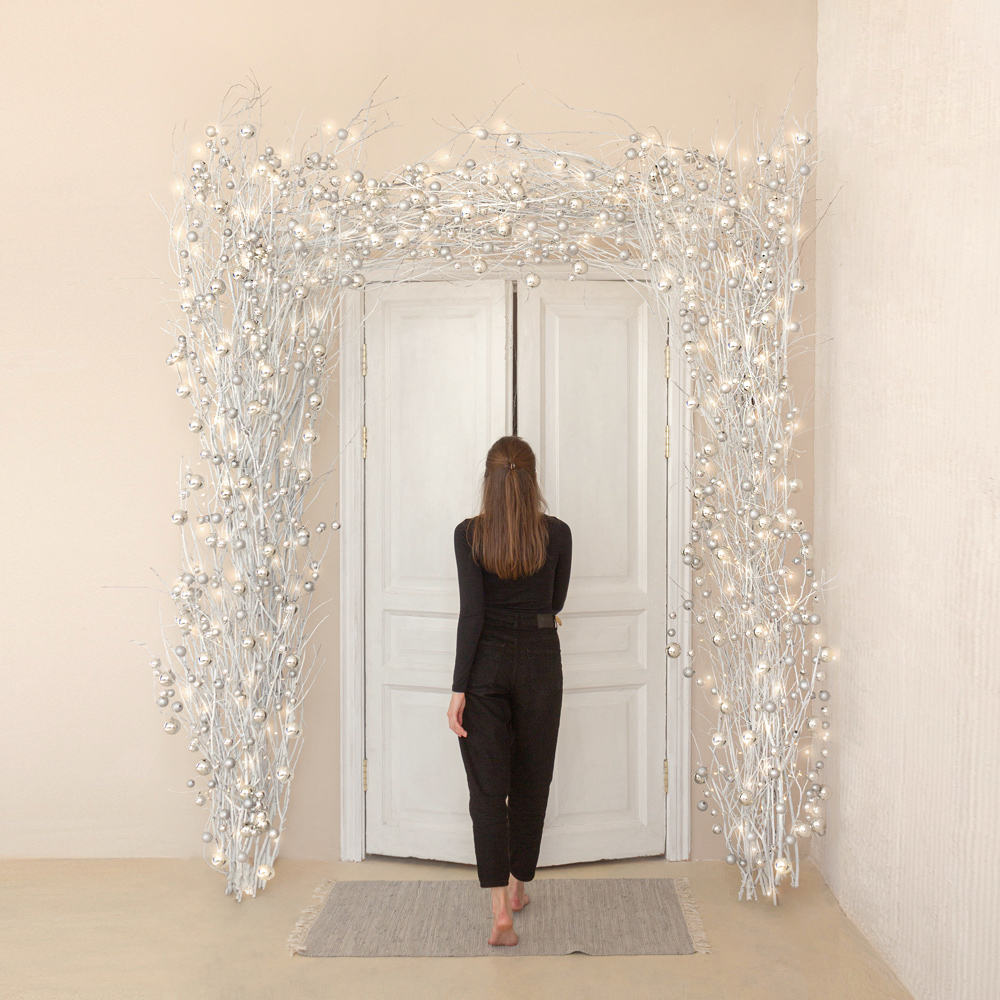 ДЛ85-2(Пр) Декор входной группы зимний с шарами L100см на белых прутьях, пристенный