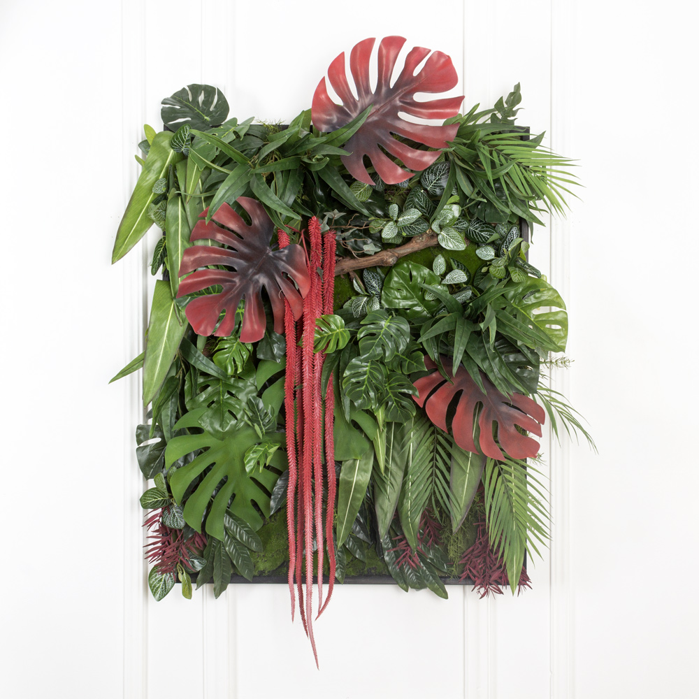 ФК25 Фитокартина искусственная с монстерой бордо в деревянной раме 80хh100см