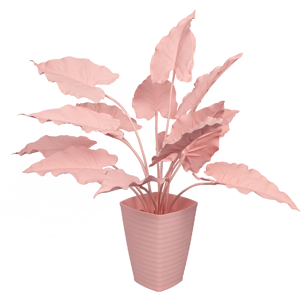 К055*2-1 Каладиум куст (розовый) h55см(силикон) в интерьерном кашпо d17см