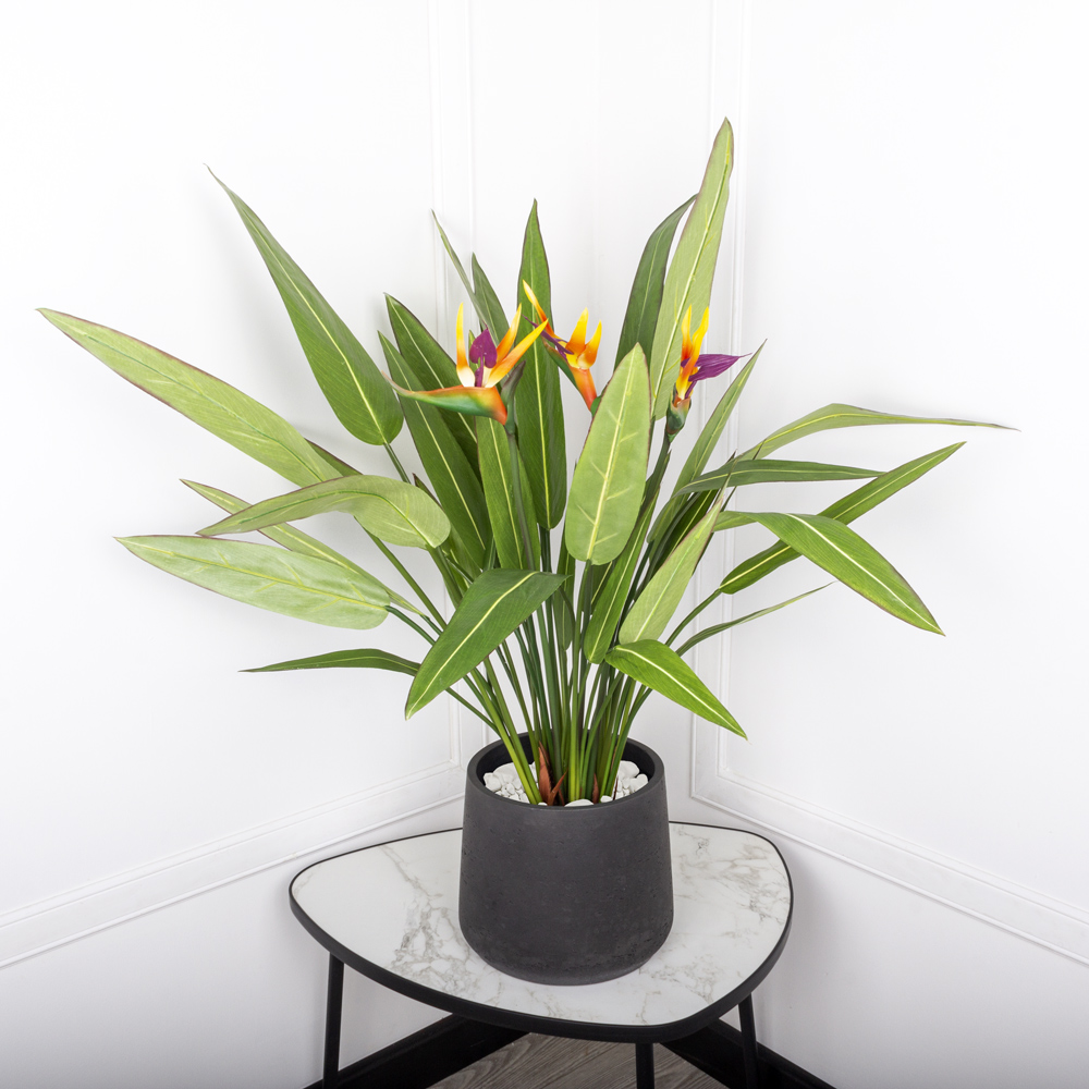 К075*6-1 Стрелиция искусственная куст с цветами большой h75см (силикон/латекс) в кашпо