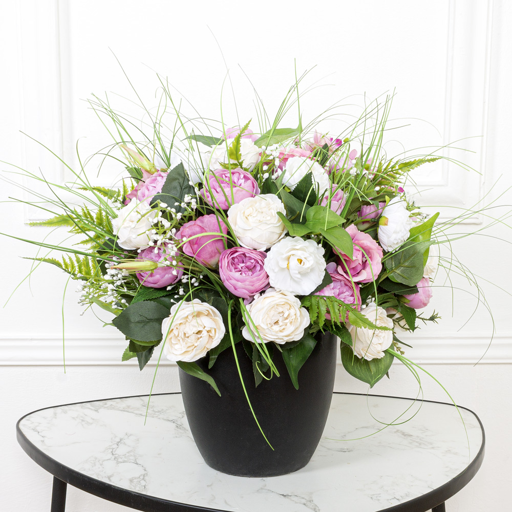 К123(з) Композиция искусственная Розы пионовидные и орхидеи в кашпо