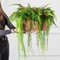К15-9(з) Композиция искусственная с папоротником в кокосовом боксе 35х20х13,5см