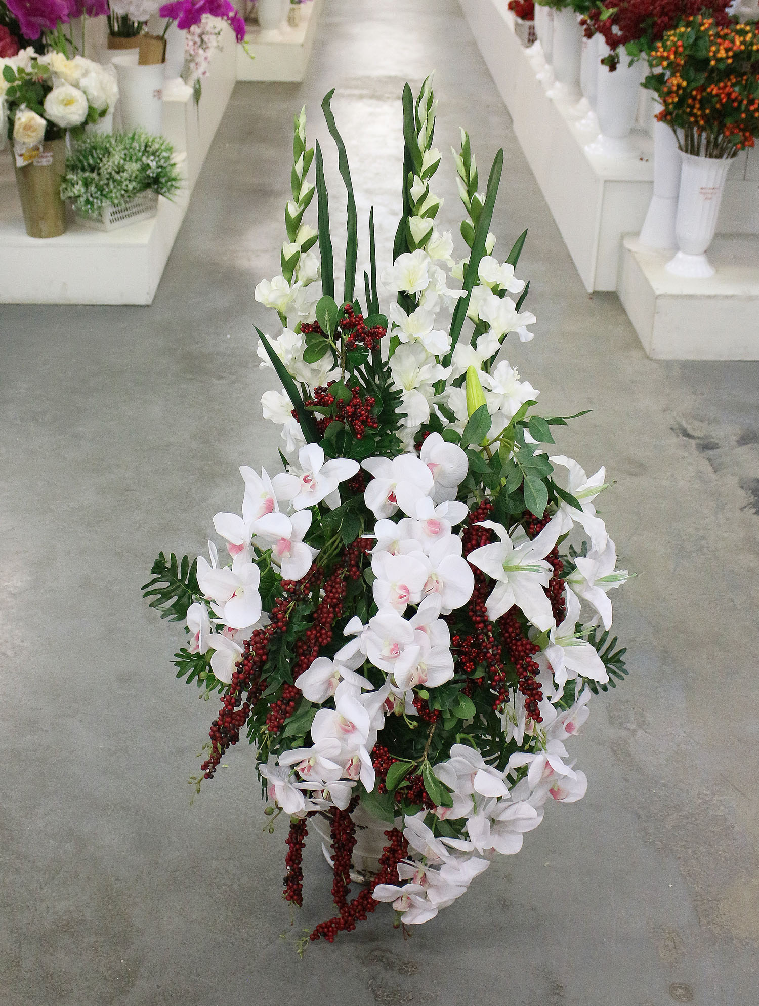 К262(з) Композиция в интерьерной вазе h-130 см (ваза-43см, ваза-87см)