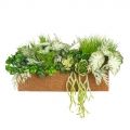 К301/2-6(з) Композиция искусственная Зеленый микс с травой и роули h15см в кокос. боксе 55х20х14см