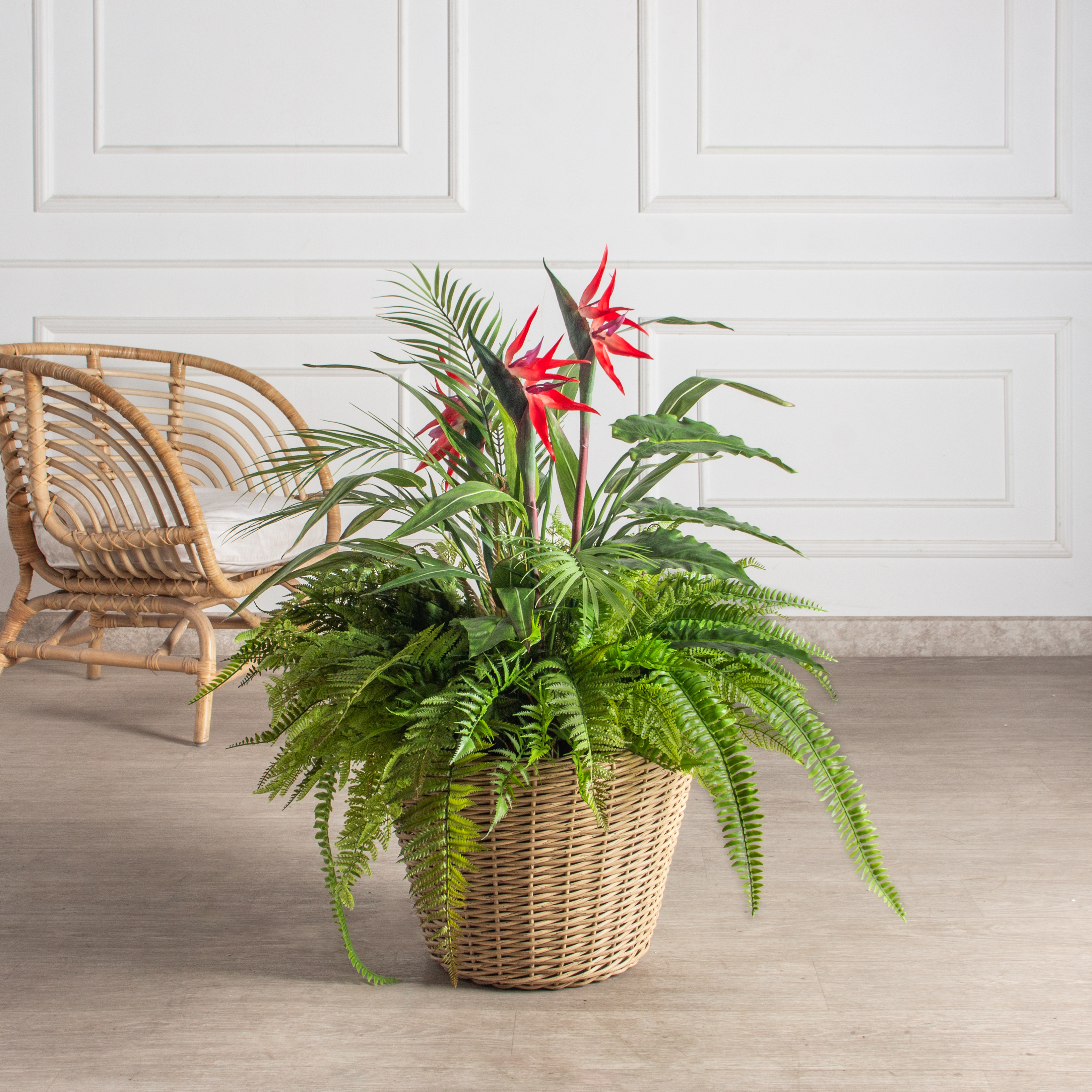 К327-28/2(з)(F) Композиция искусственная Тропический микс со стрелицией в кашпо d26см