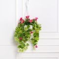 К450(з)(F) Композиция искусственная цветочная с петунией розовой в подвесном кашпо d15см