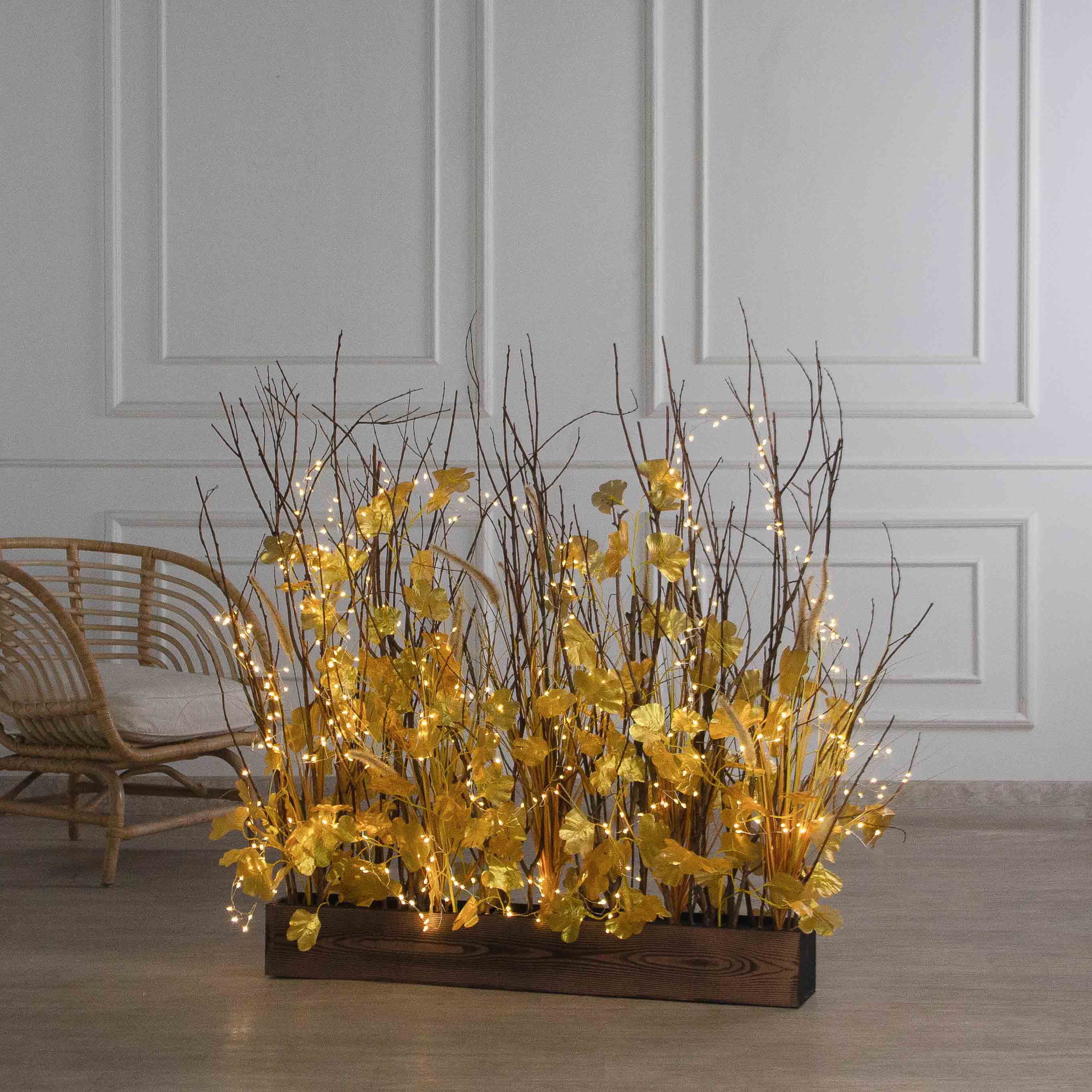 К541/СВ03(Пр)(F) Композиция искусственная с Гинкго и гирляндой Роса на основании, золото