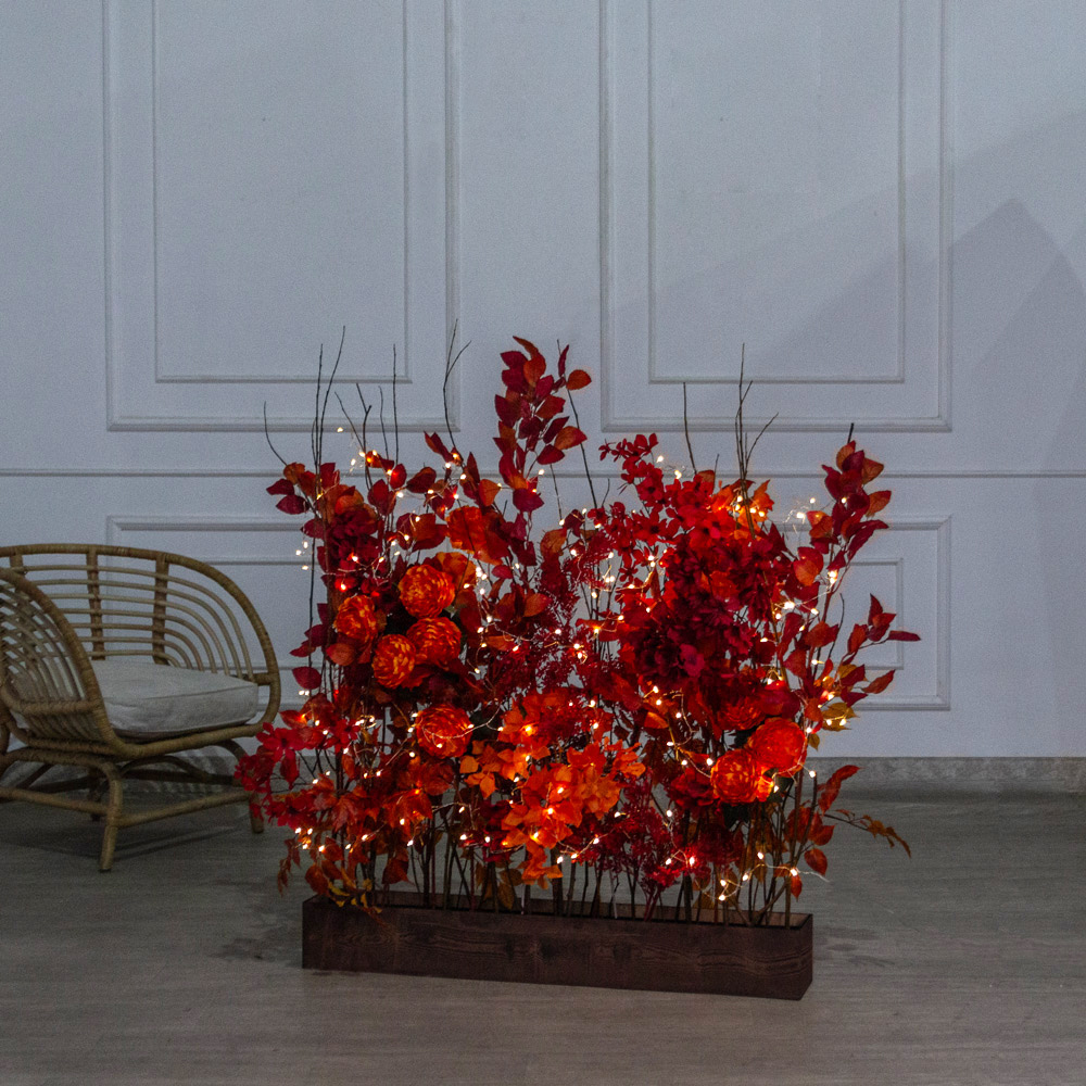 К544/СВ03(Пр)(F) Композиция искусственная с гирляндой Роса на основании, красно-оранжевая