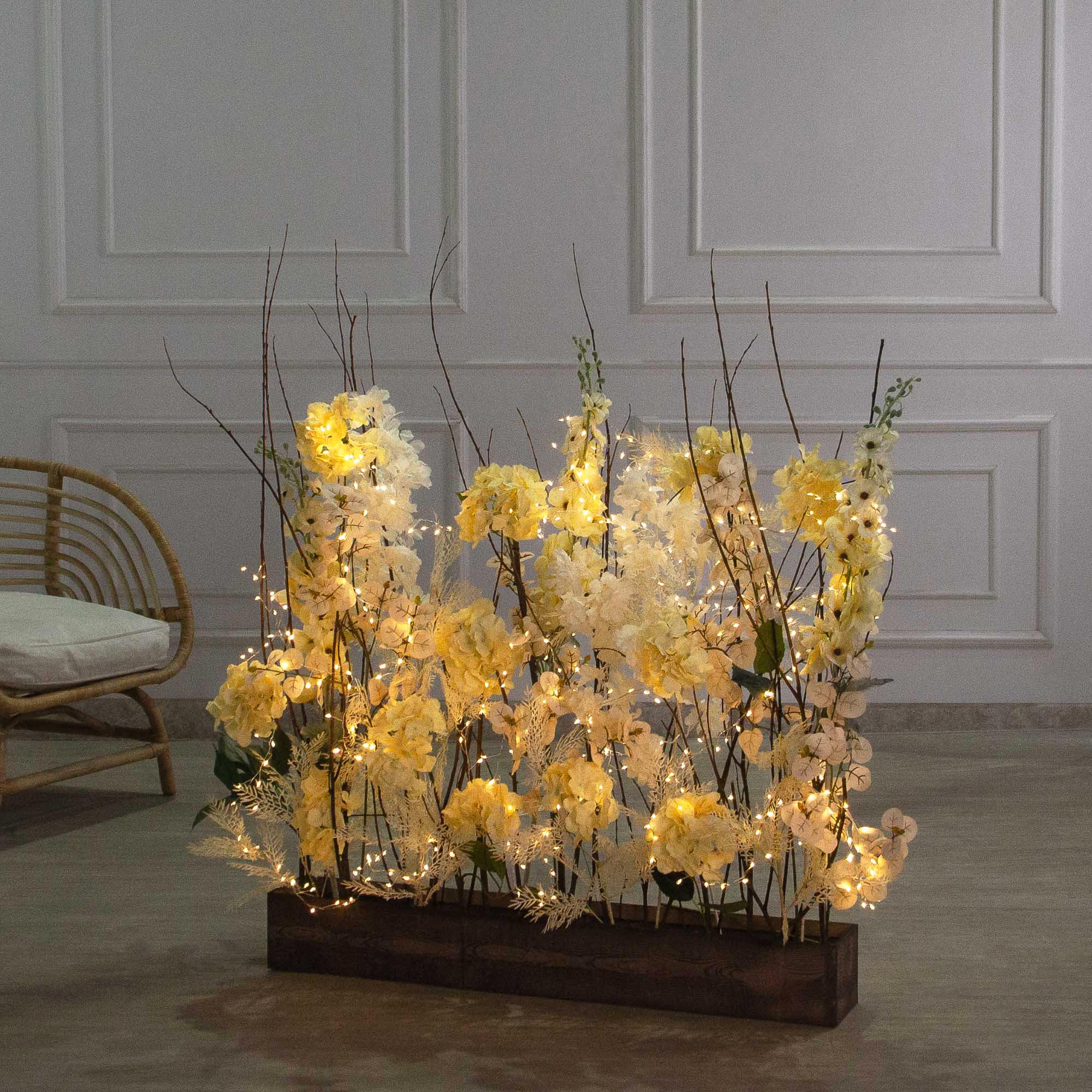 К547/СВ03(Пр)(F) Композиция искусственная с гирляндой Роса на основании, кремовая