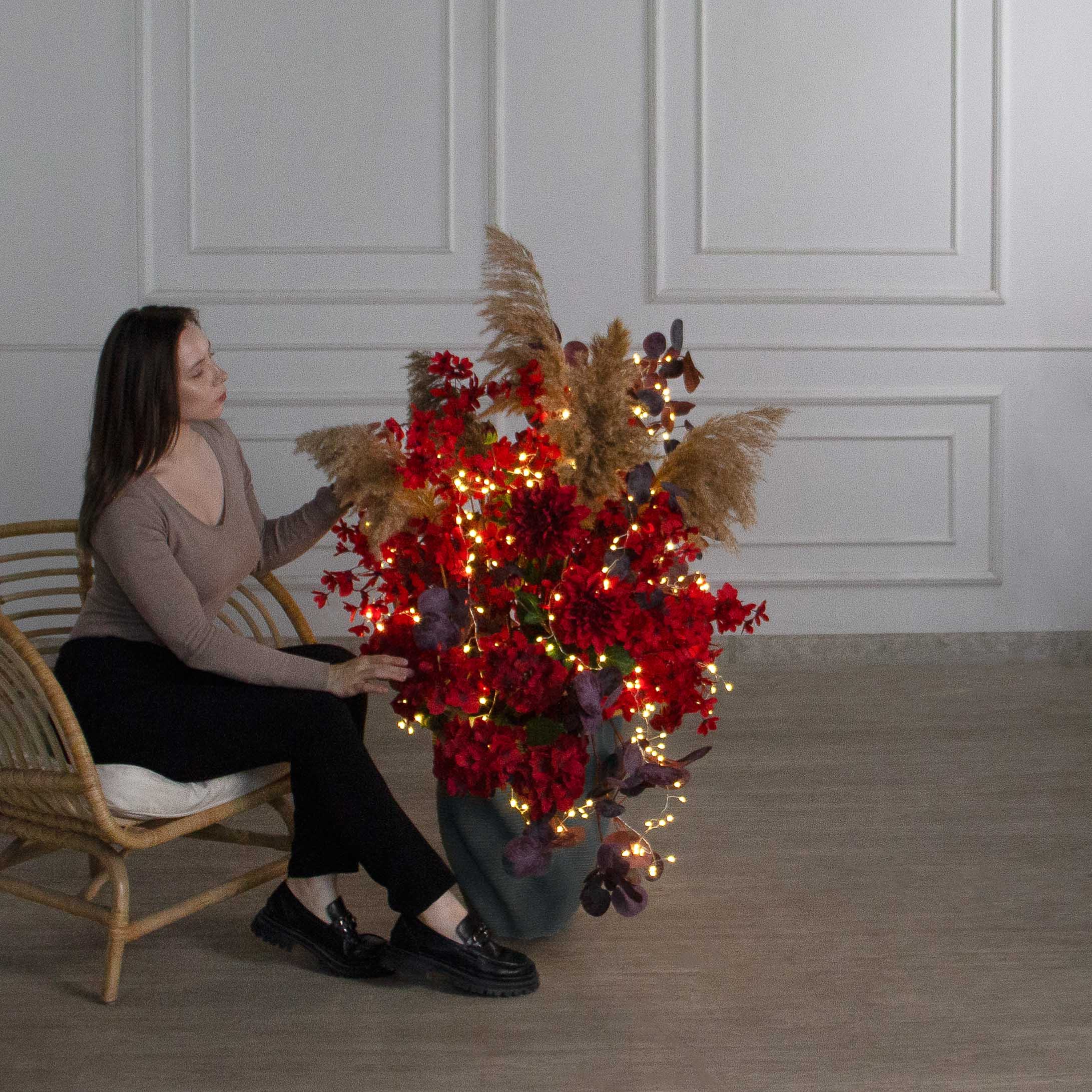 К549/СВ03(Пр)(F) Композиция искусственная с гирляндой Роса на основании, красно-бордовая