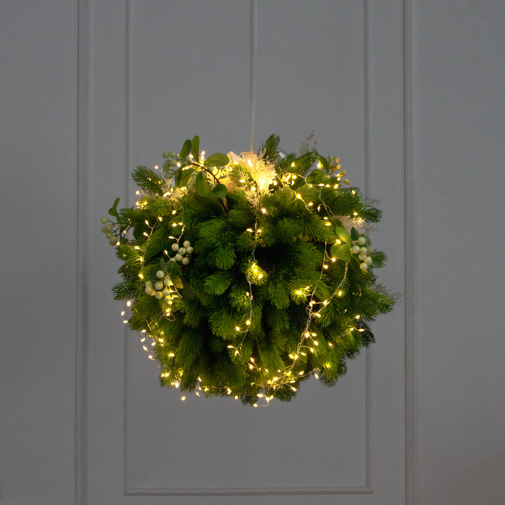 К559/СВ03т-1(Пр)(F) Композиция искусственная подвесная НГ d50см, с белым декором и гирляндой Роса