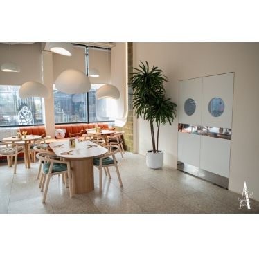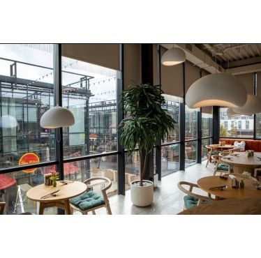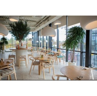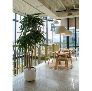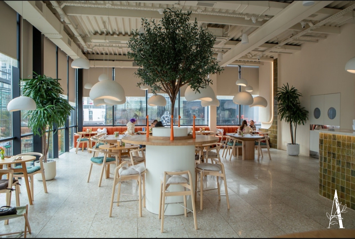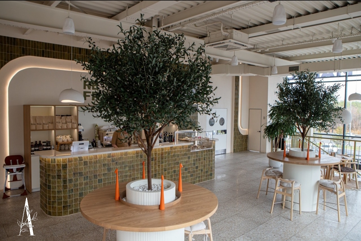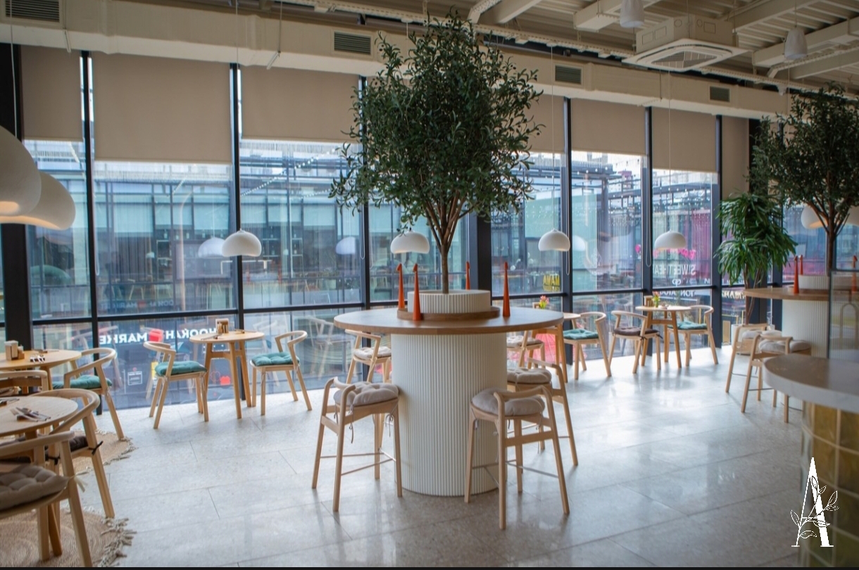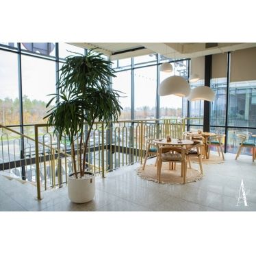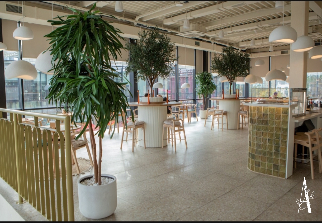 Прекрасные ветвящиеся растения, украшающие пространство нашего кафе, создают атмосферу спокойствия и гармонии, наполняя интерьер живым дыханием природы. Эти элегантные зелёные композиции придают помещению уют и свежесть, дарят ощущение близости к природе даже среди городской суеты.