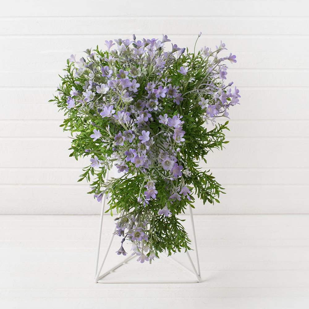 Кампанула искусственная ампельная в кашпо на металлической подставке, фиолетовая, h 35см