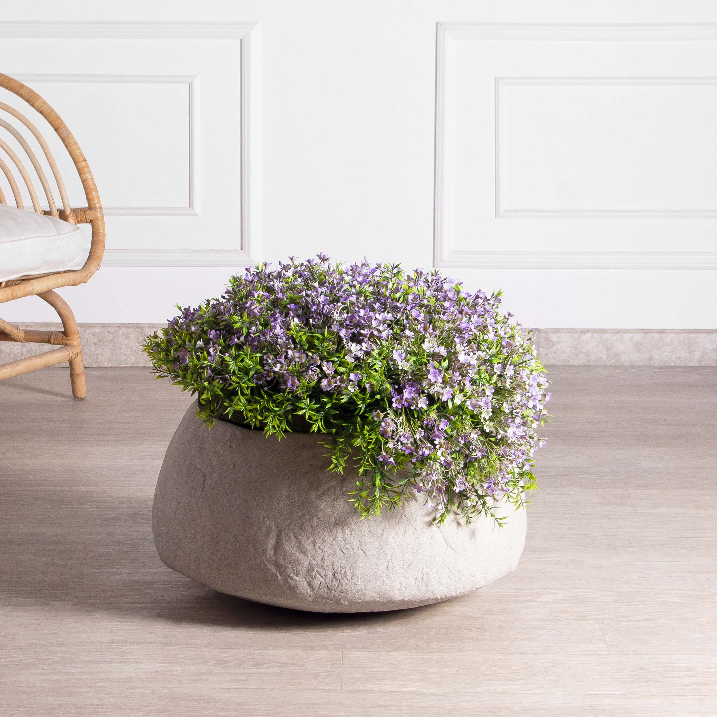 Кампанула искусственная ампельная в кашпо на металлической подставке, фиолетовая, h 35см