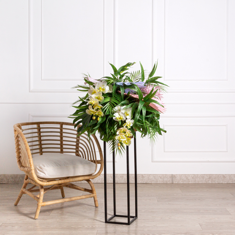 КМП1(F) Композиция искусственная Тропики с орхидеей h75-80см на металлической подставке h70см