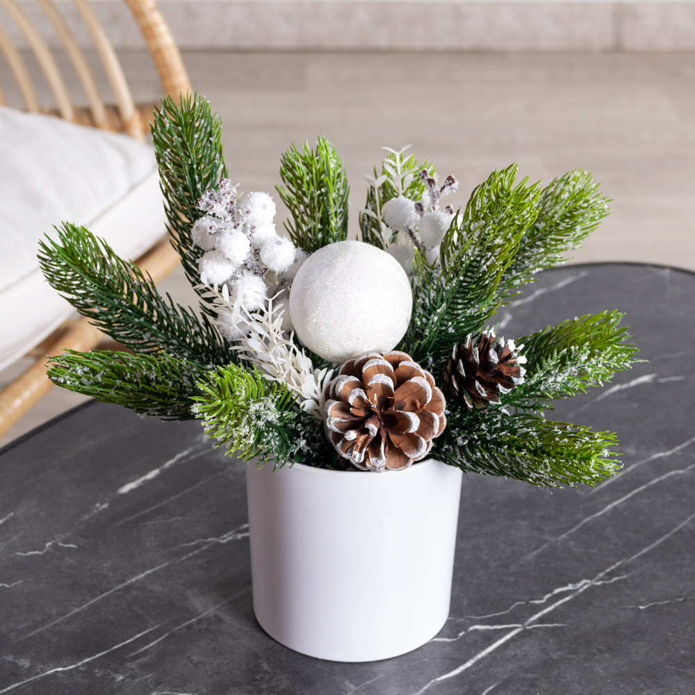 КНг50(F) Композиция НГ искусственная белоснежная h18см в кашпо d10см