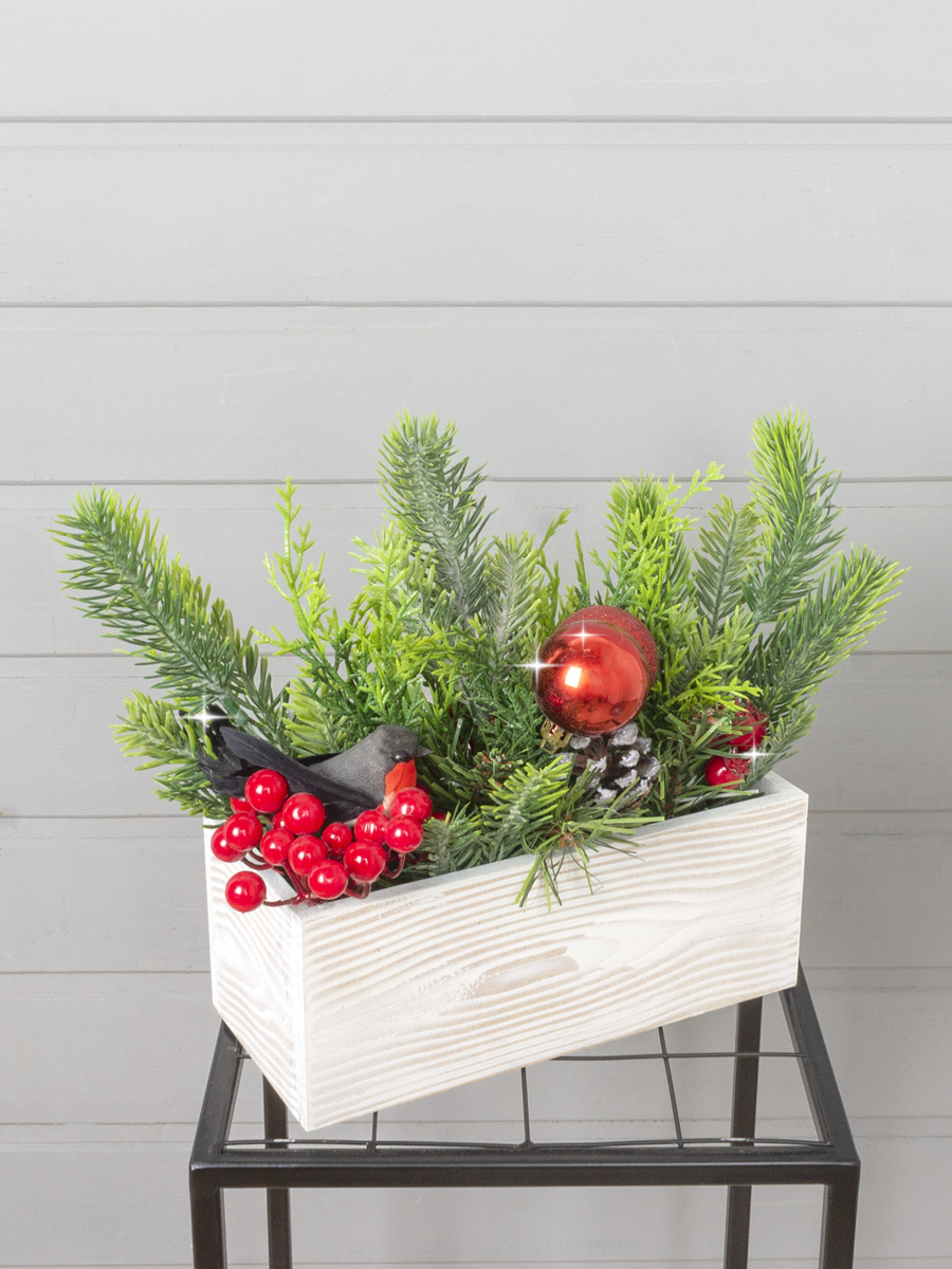КНг53-1 Композиция НГ h27см в деревянном ящике 20х9х8см, красно-зеленая