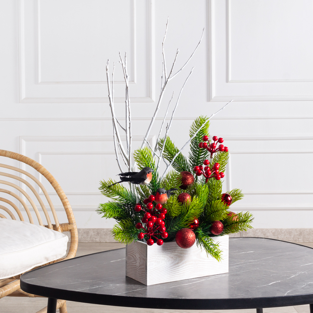 КНг56(Пр) Композиция НГ со снегирями в ящике 20х9хh8см