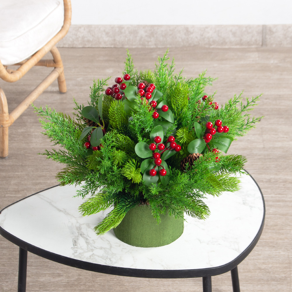 КНг57-6(з)(F) Композиция НГ искусственная с ягодами на основании d15 h10см