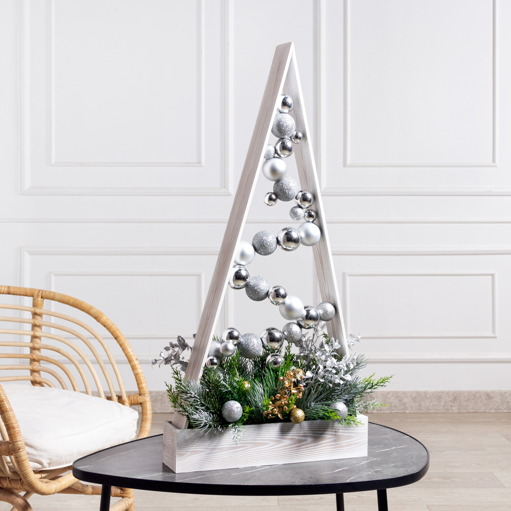 КНг59-1(Пр)(F) Композиция искусственная НГ Елочка в ящике 40х9хh8см, серебро