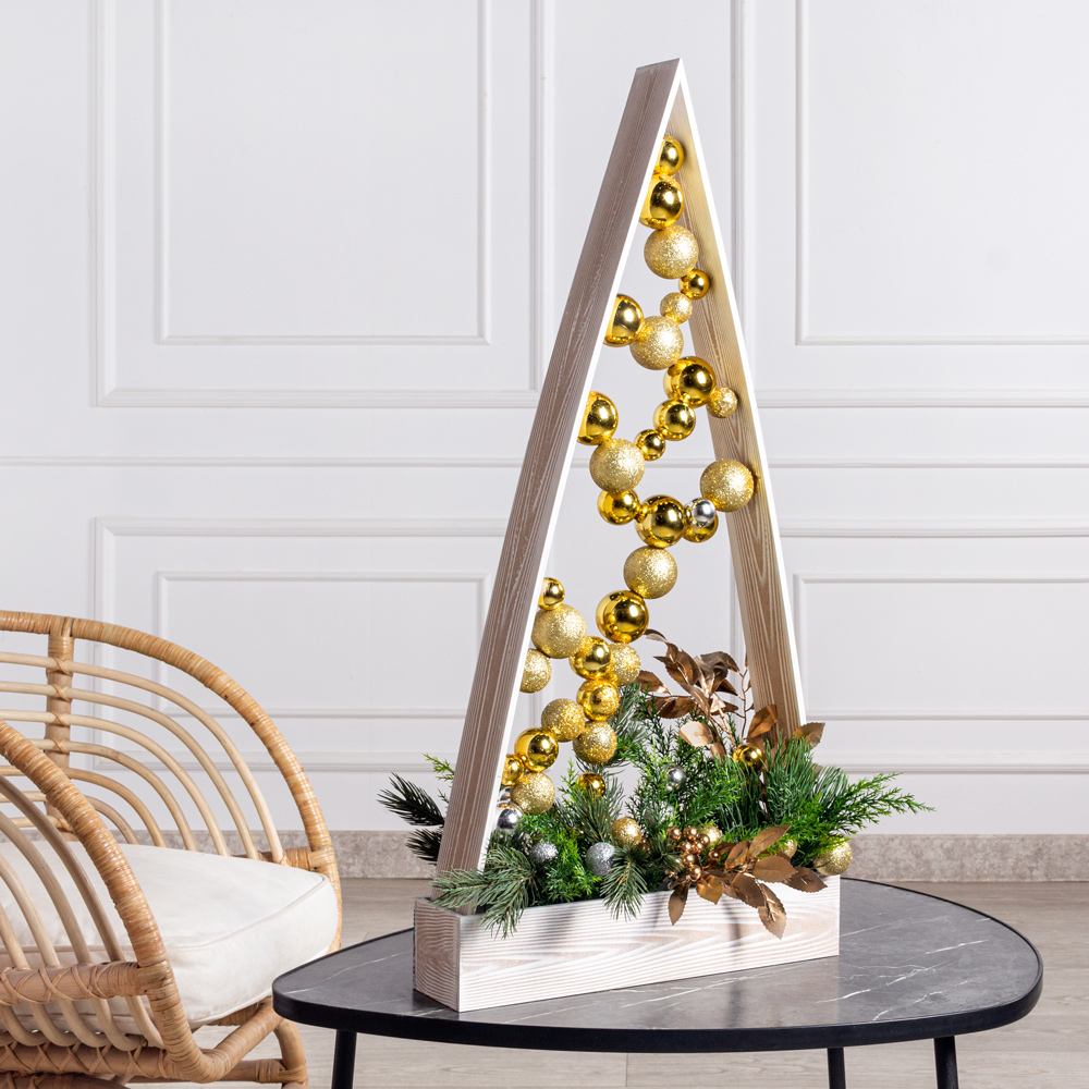 КНг59(Пр)(F) Композиция искусственная НГ Елочка в ящике 40х9хh8см, золото