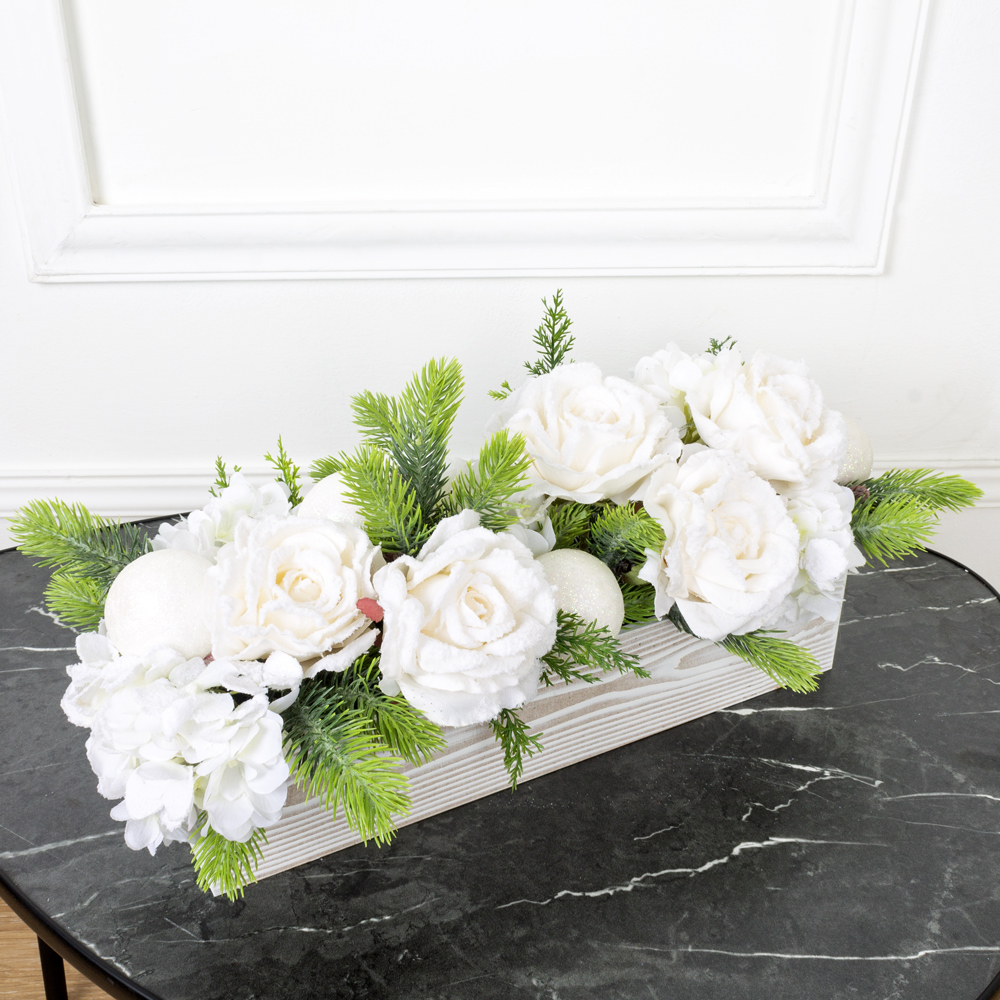 КНг63 Композиция искусственная НГ с цветами в ящике 40х9хh8см
