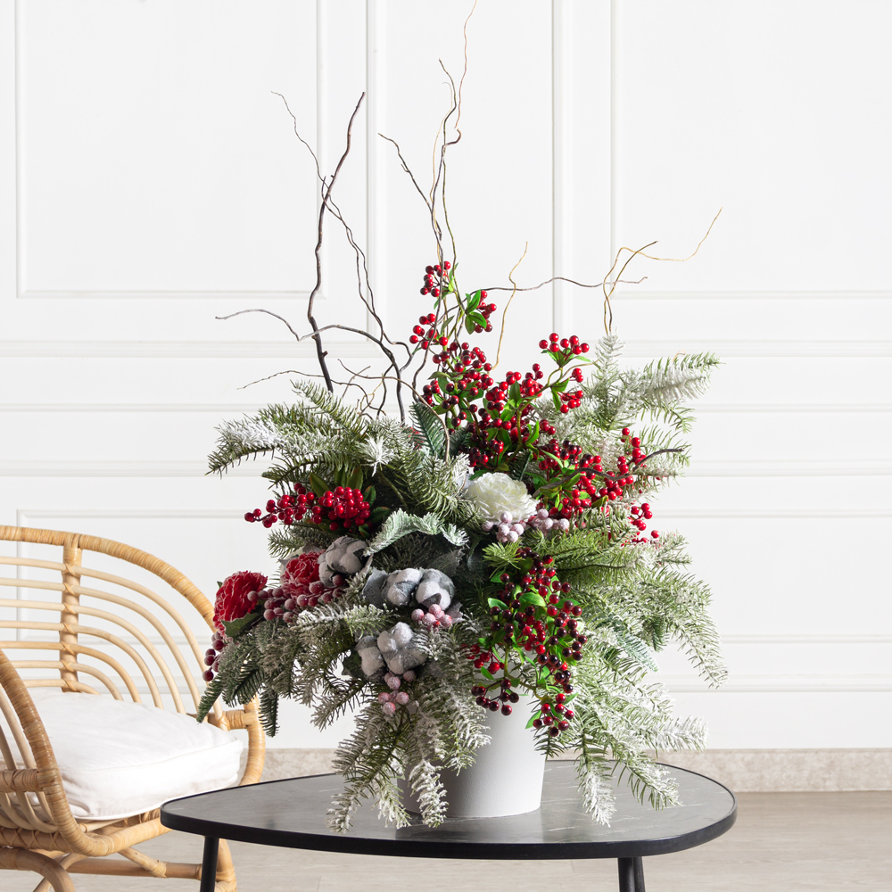 КНг64(Пр)(F) Композиция искусственная НГ хвойная с ягодами в кашпо