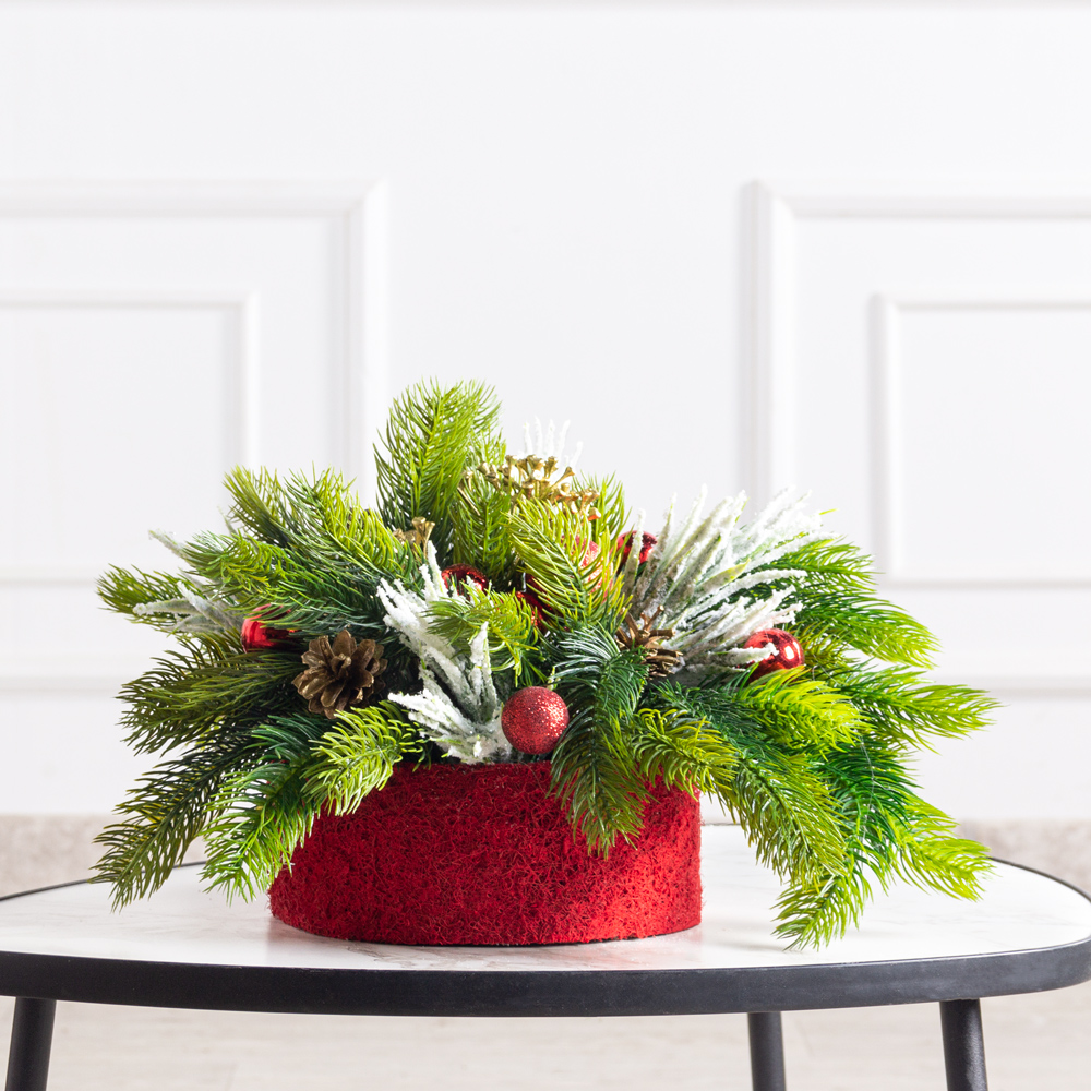 КНг65/1(з)(Пр) Композиция искусственная НГ в красном кокосовом боксе d20,h8см, красная