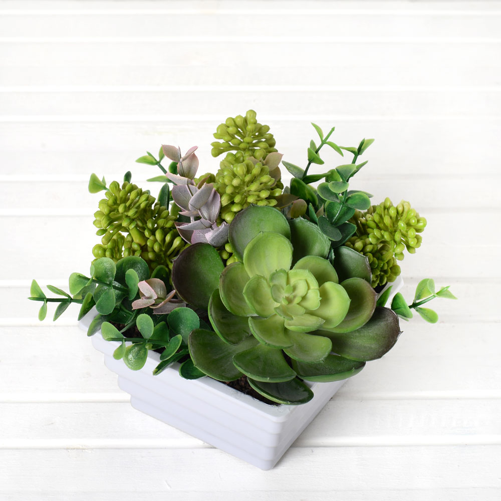 Композиция из суккулентов искусственных в интерьерном кашпо. зеленая, h 16см