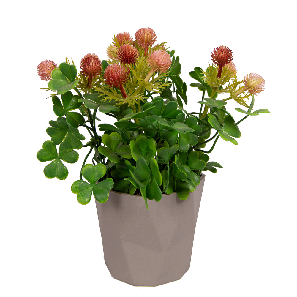 КС/О35-3(Sale) Композиция искусственная Клевер в декоративном кашпо h25см, малиновый