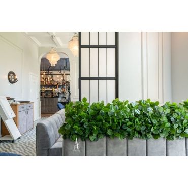 Монокомпозиция из шеффлеры не только украшает и освежает залы кафе #Кстати, но также несет дополнительную функцию по зонированию пространства и разделению столиков друг от друга для создания повышенного комфорта и уюта гостей.