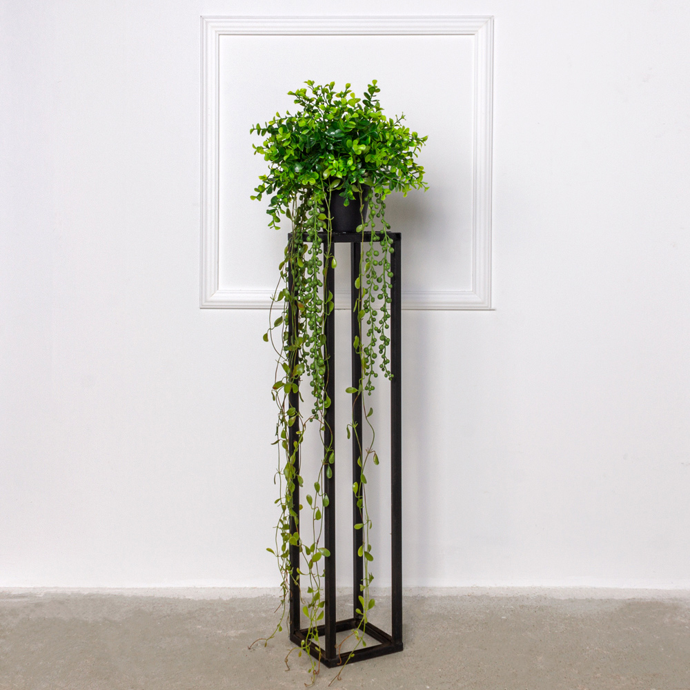 КЗ/03-2(з) Композиция искусственная Самшит с ампельными суккулентами в кашпо 13,5х13,5х16см