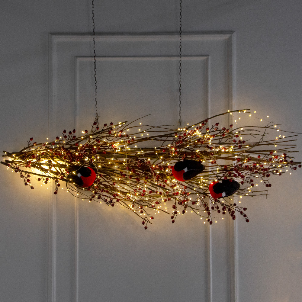 Л185/СВ03т(Пр)(Fix)(F) Лиана искусственная со снегирями и гирляндой Роса L150см