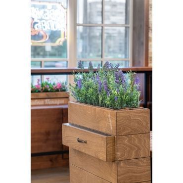 Для поддержания приятной и радушной атмосферы в любое время года булочная "Лавка Пекаря" использует композиции из полевых цветов, а именно космею и лаванду, которые добавляют уют в такой теплый интерьер!