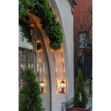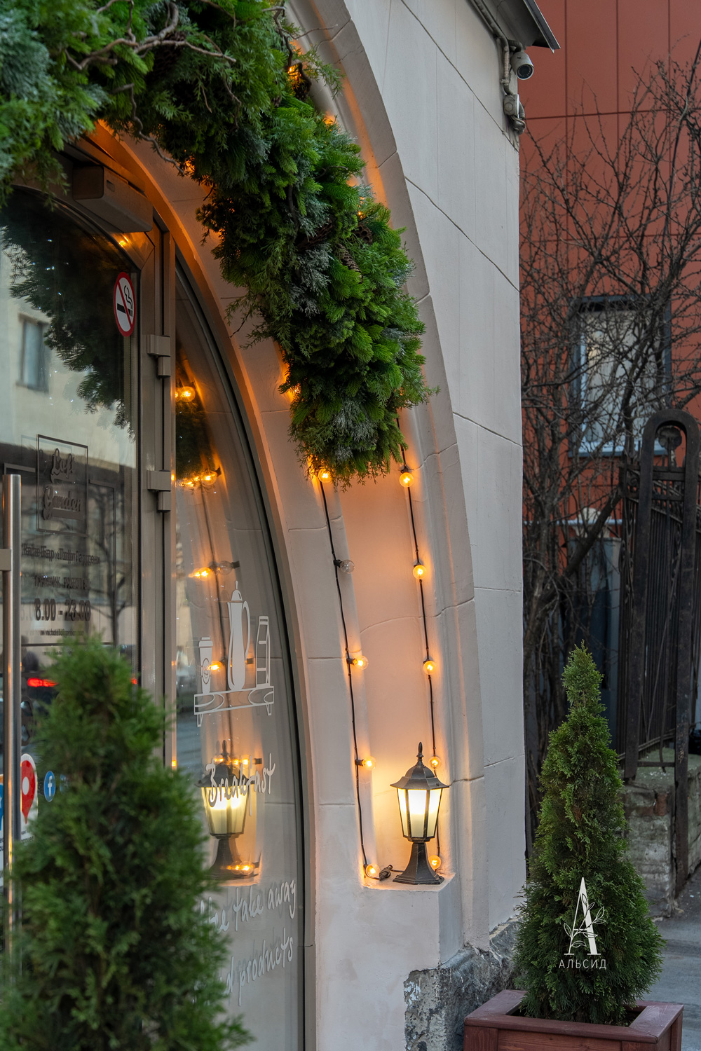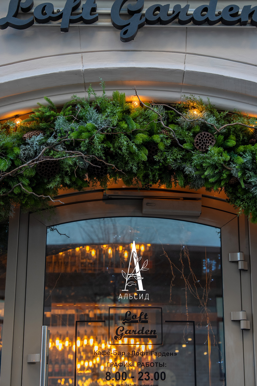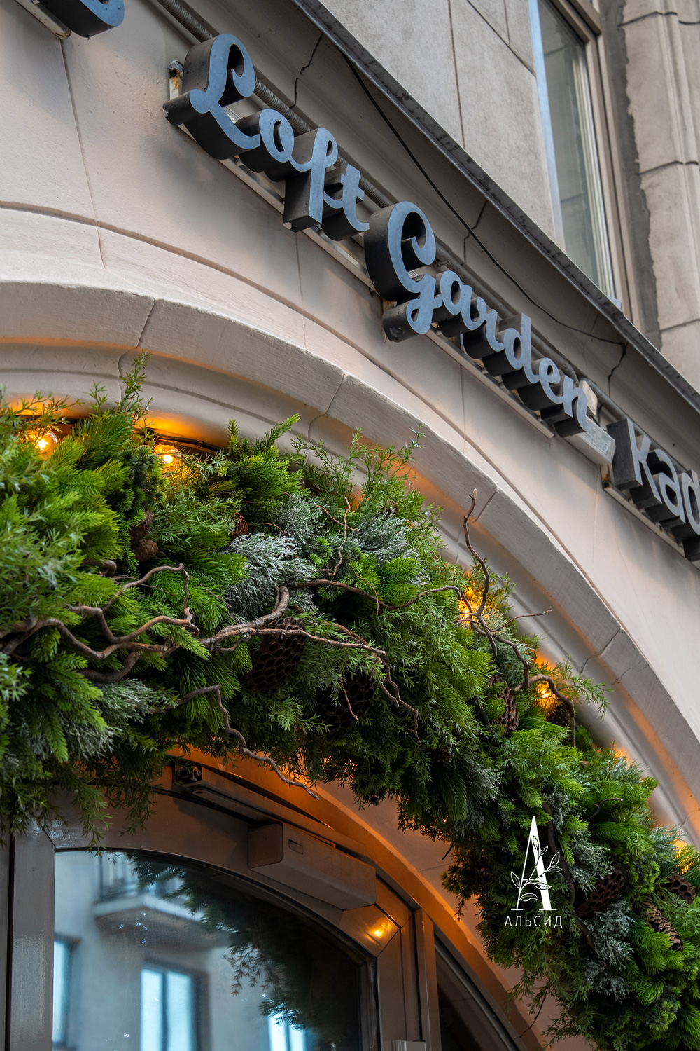 Новогодний декор в арочной входной группе всегда выглядит волшебно! Украшение сделано максимально натурально: c использованием настоящих веточек, шишек и сухоцветов. А искусственные хвойные лианы выполнены из высококачественных материалов и благодаря этому выглядят очень естесственно.