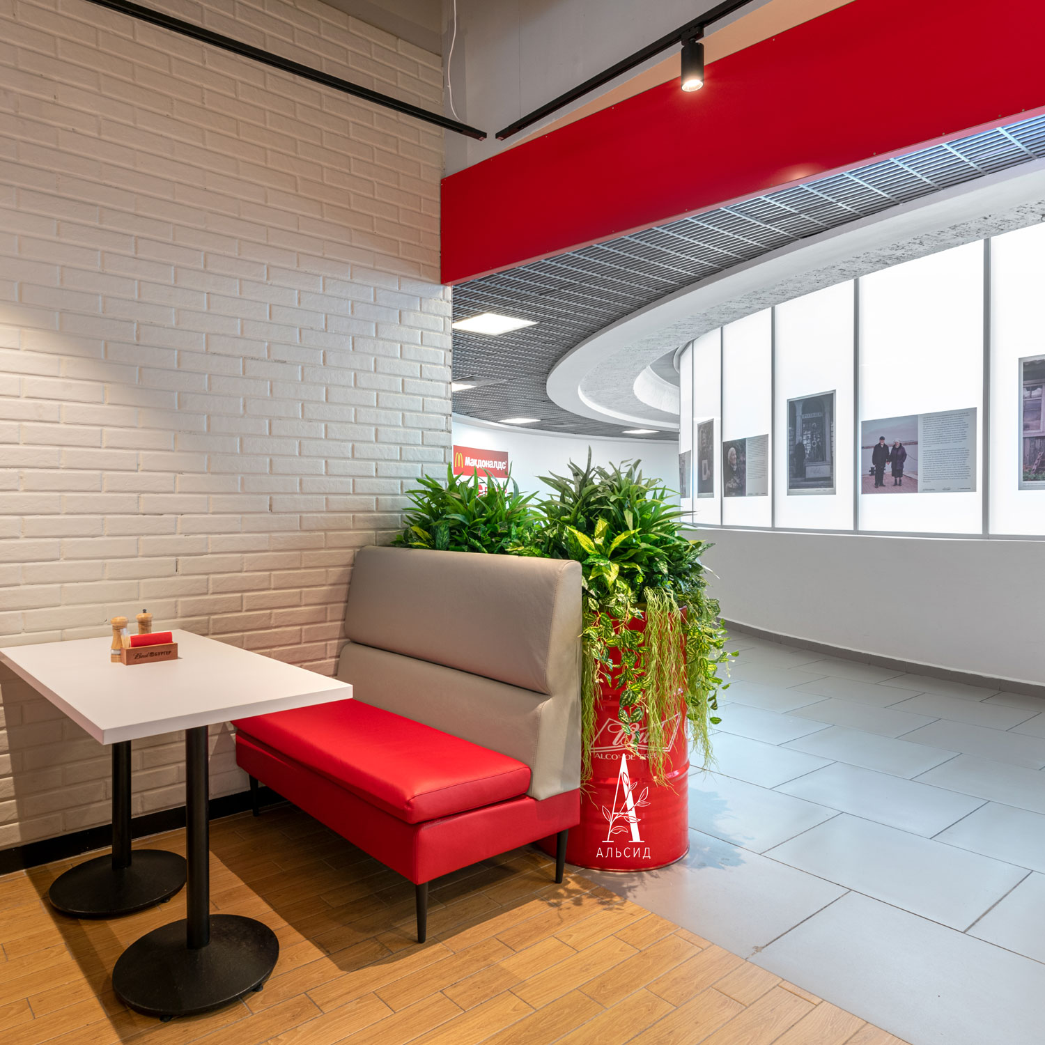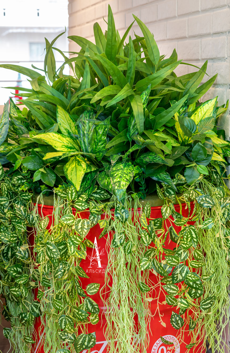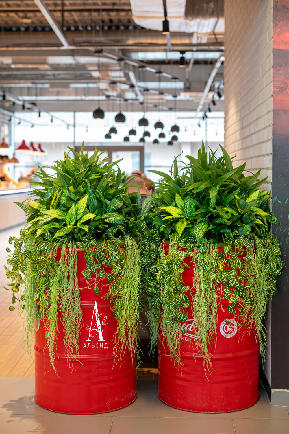 Композиция из тропических растений была создана специально под размер декоративной бочки в виде модульной вставки. Такой декор также обладает многофункциональностью: композиции можно использовать как вместе с бочками, так и по отдельности, придавая интерьеру новый вид.;