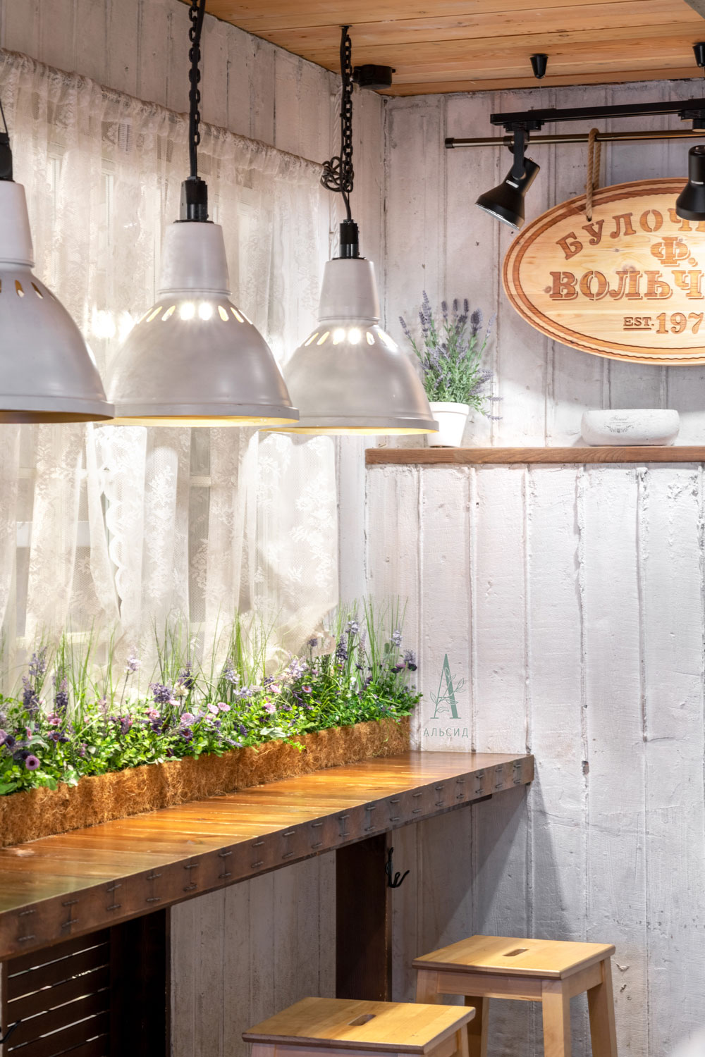 Одна из самых популярных булочных Петербурга выбрала для своего интерьера композицию из лаванды в кокосовом боксе. Сеть насчитывает уже 107 булочных в городе, и в каждой из них лаванда, ставшая уже символом, дарит посетителям хорошее настроение!;