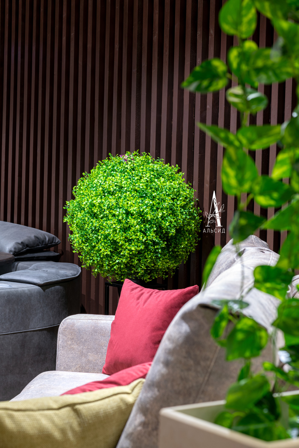 Искусственные растения все чаще можно встретить и в домашних интерьерах. Так, выставочное пространство Decor Expo представило варианты декора для дома: банановая пальма, сноп-букет из осоки, самшит-шар, тропический микс, пальма кустовая, подвесное кашпо 1, подвесное кашпо 2, папоротник, папоротник большой, стена из сциндапсуса, композиция из цветных тропических растений, кокедама из тропических растений, формиум 77см и фомиум 103см. ;