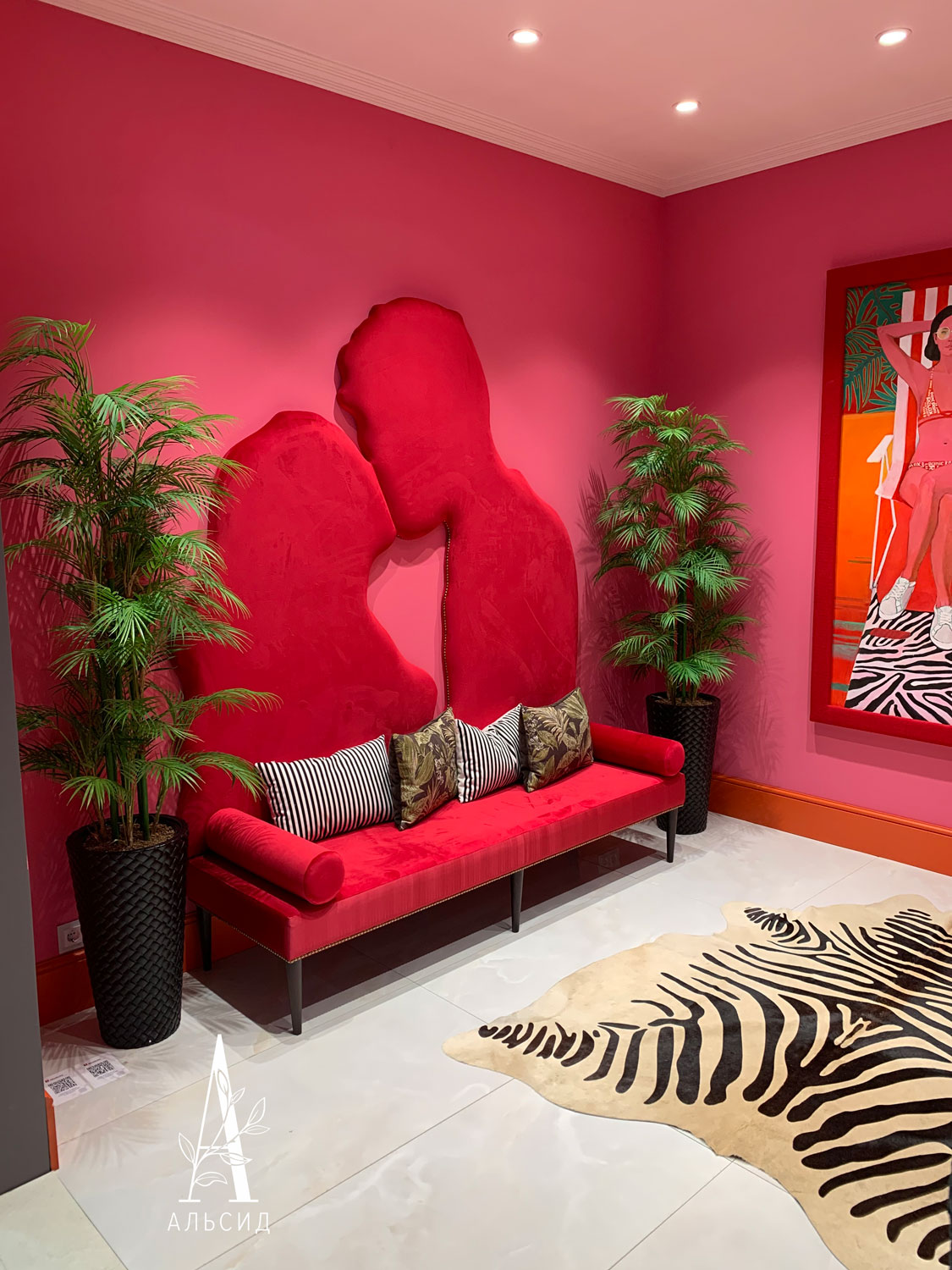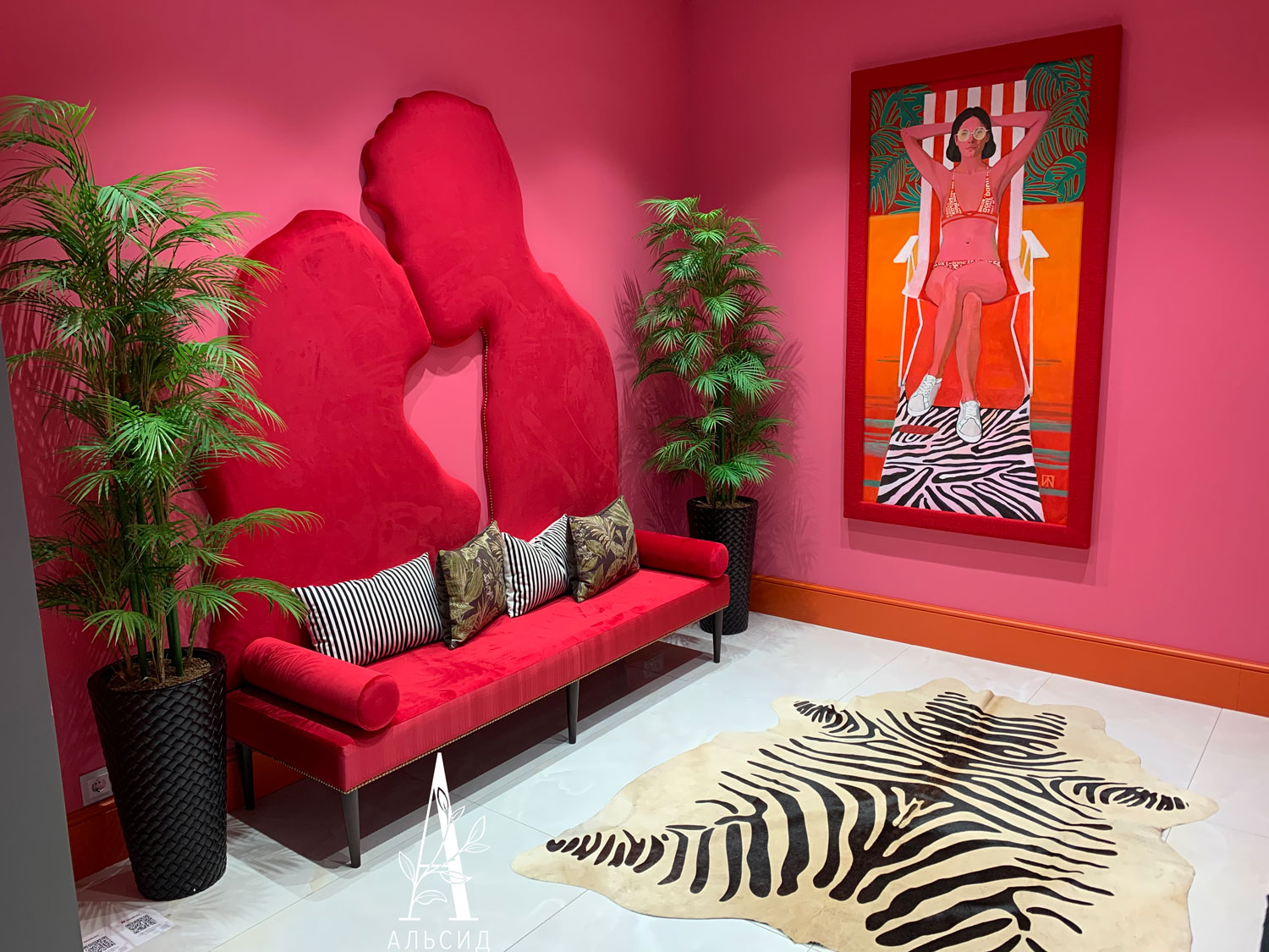 Титулованный дизайнер Анна Муравина, победитель многих конкурсов и основатель авторской коллекции декора, также использует искусственные растения в своих проектах. Самые актуальные места для таких растений - это помещения без окон, где невозможно создать благоприятные условия для живых растений, но не хочется ограничивать свои решения. Так, в красной прихожей высокая