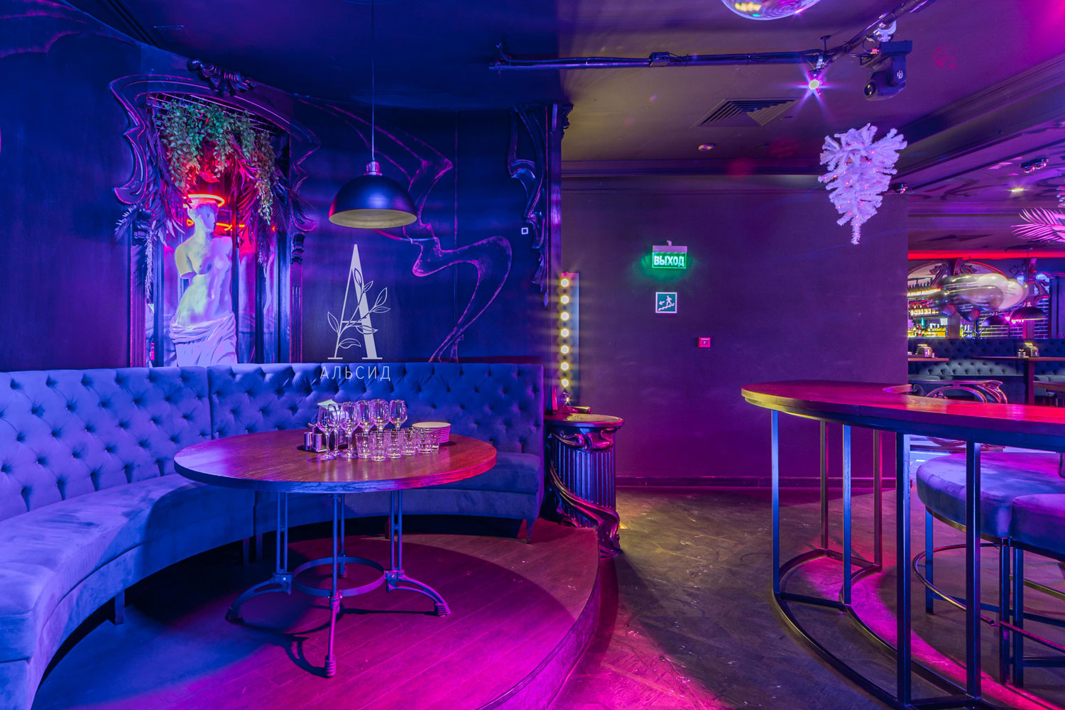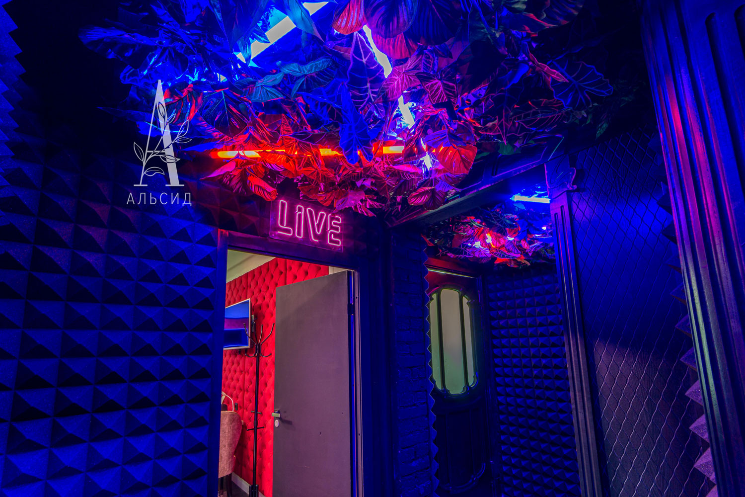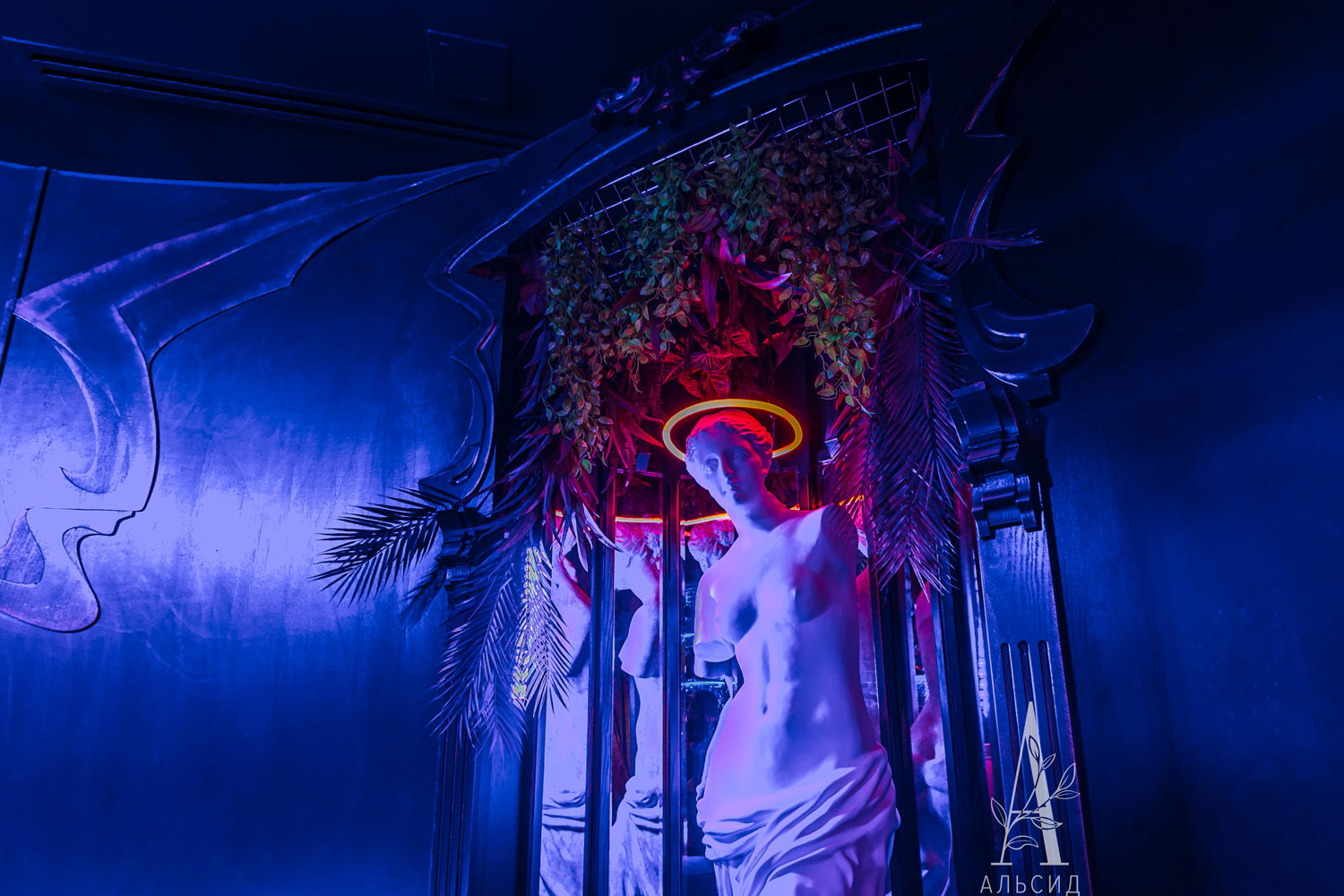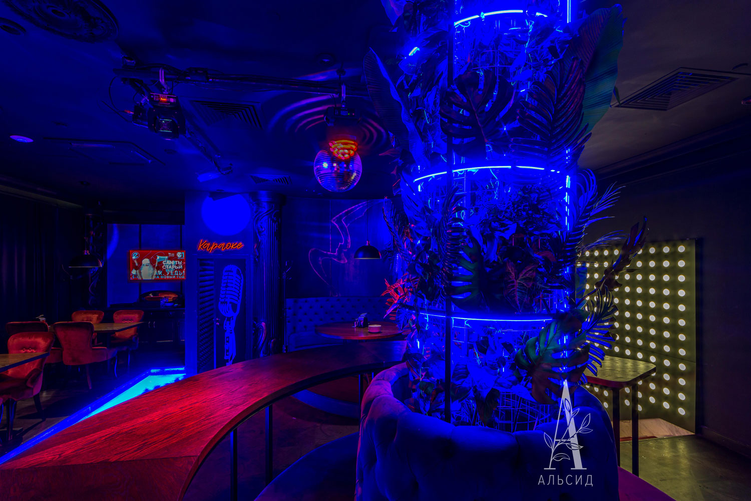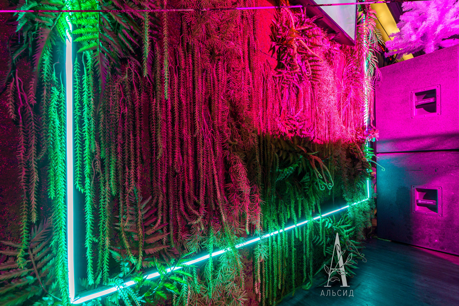 Неоновую атмосферу заведения отлично дополнили наши лианы с