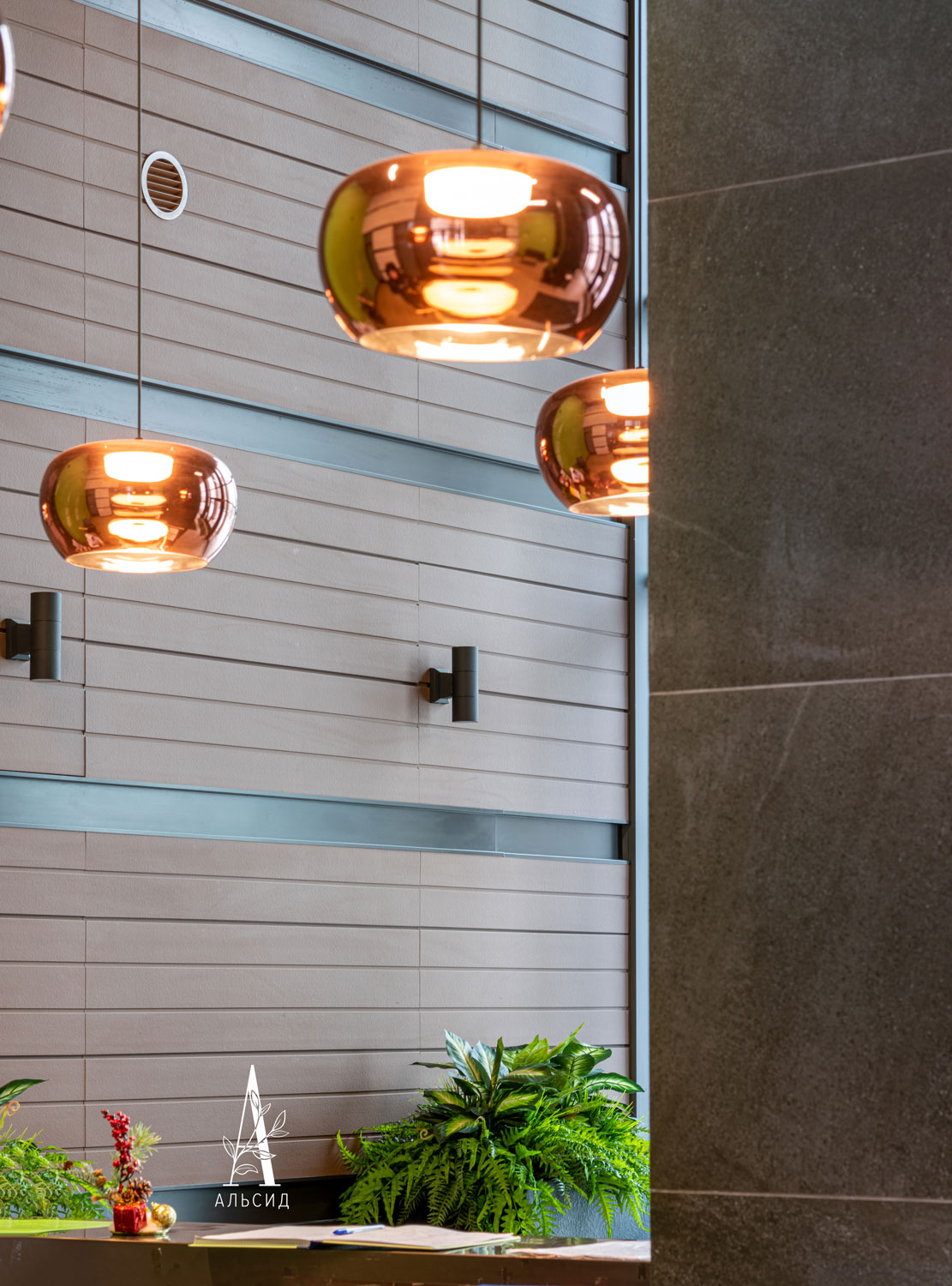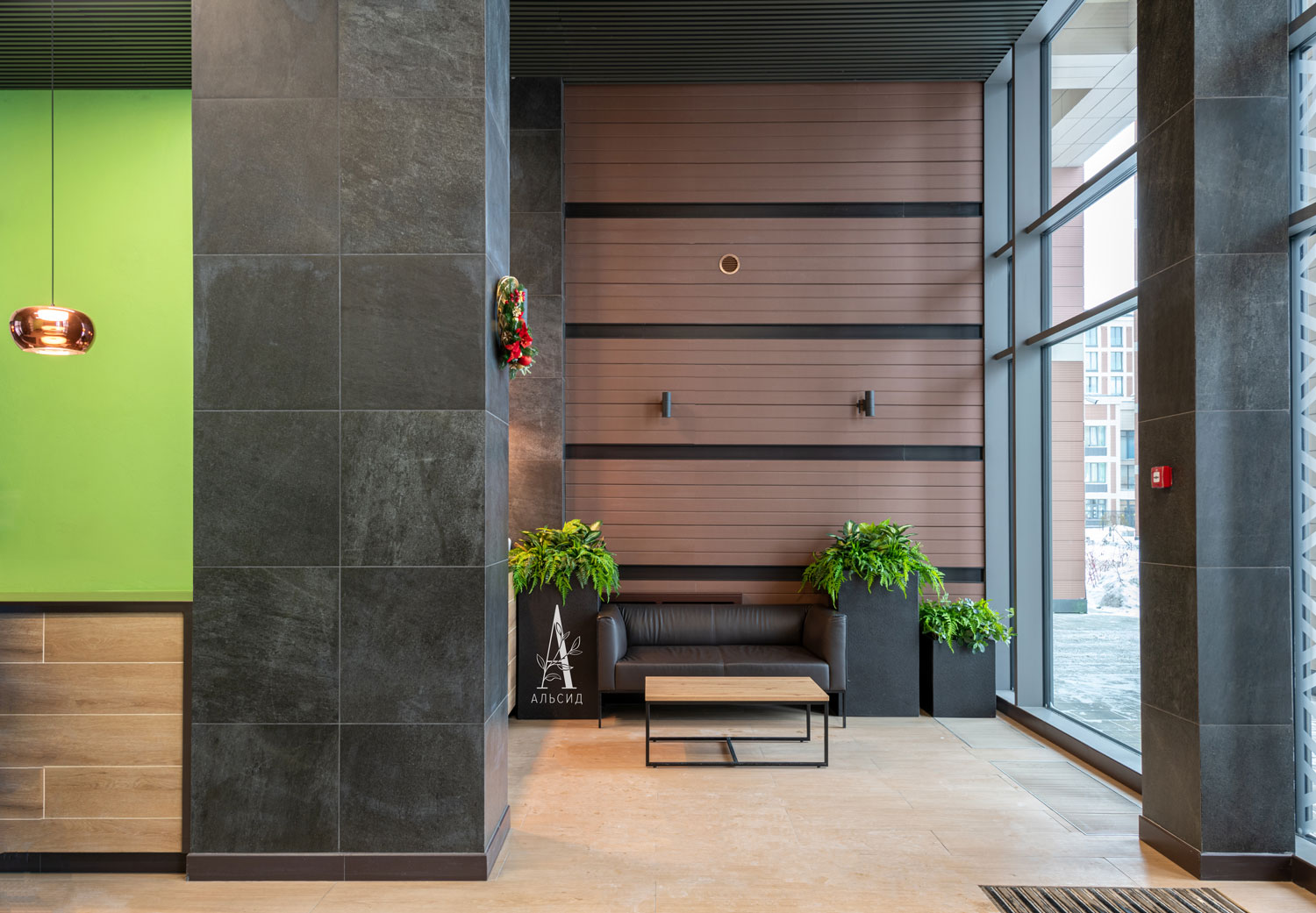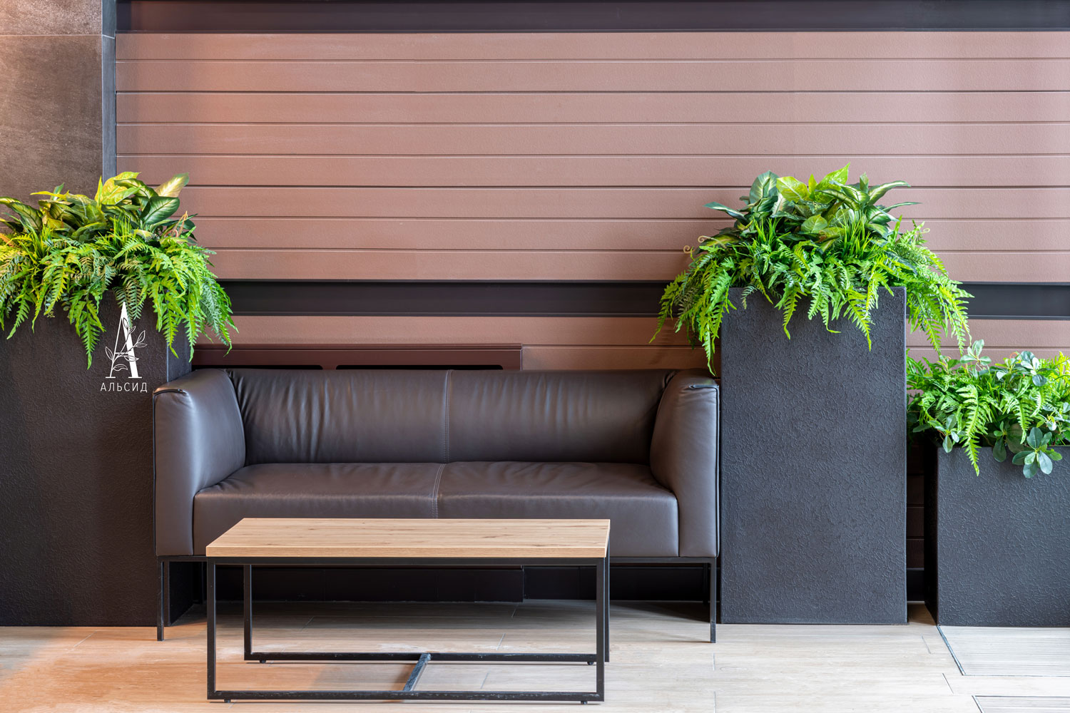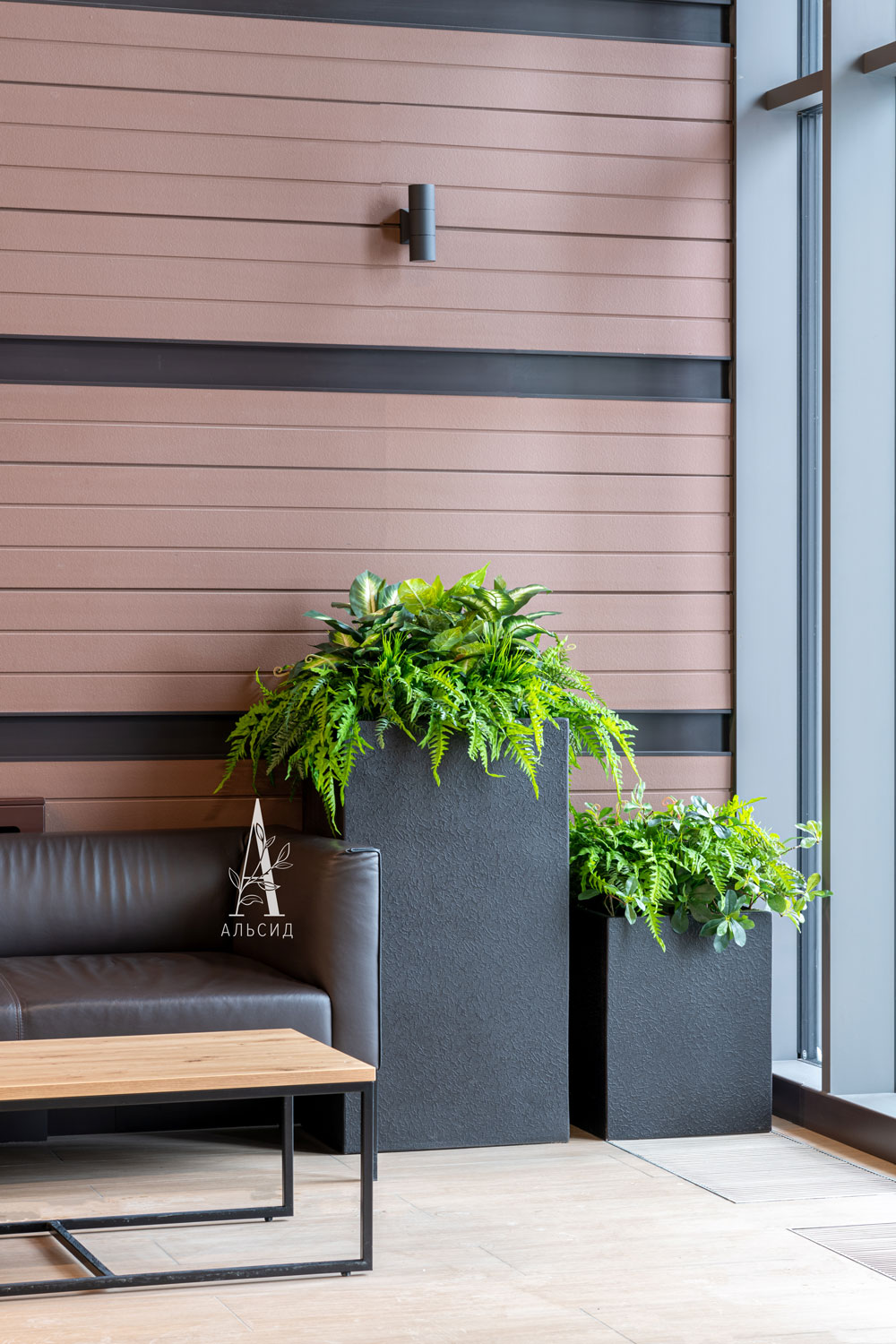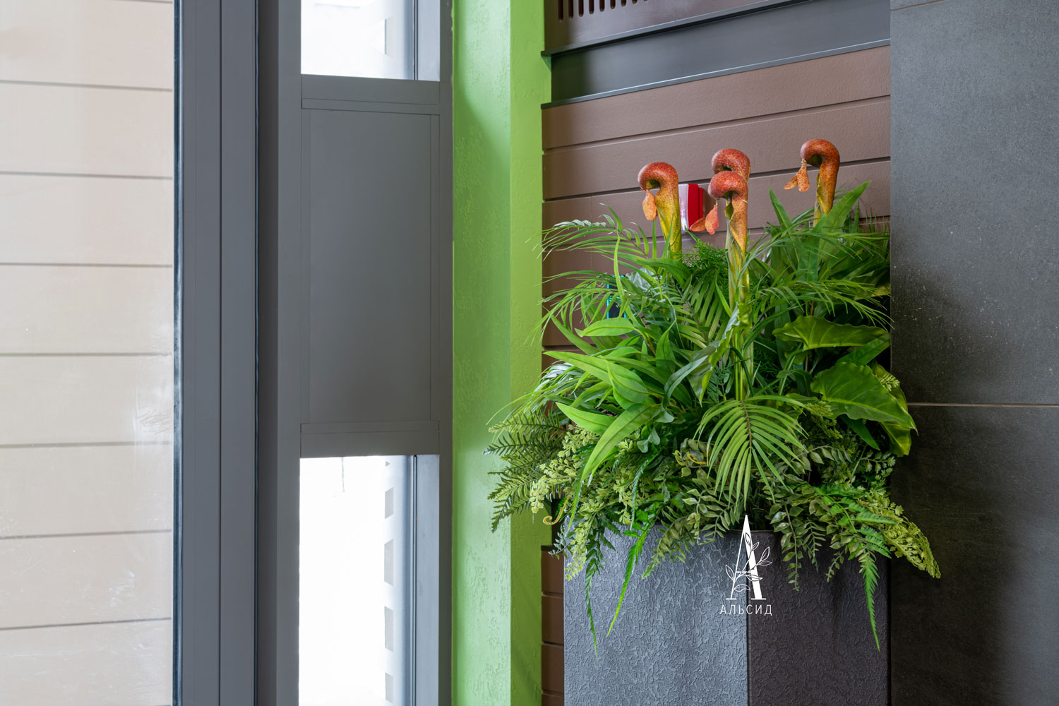 Петровский квартал - отличный пример озеленения жилых комплексов. Согласно высоким стандартам и статусу дома оформление искусственными растениями представлено не только в зоне ресепшн, но и в каждой входной группе: папоротники (с травой, с зеленью, патина), тропический микс с сарраценией, сансевиерия, микс с калатеей, сциндапсус, спатифиллум и монстера. В основе концепции лежит строгий стиль с выверенными линиями и лаконичными цветами, поэтому для растений выбрали черные боксы разной высоты. Сами растения выполнены из высококачественных материалов, что придает композициям натуральность и благородность. ;