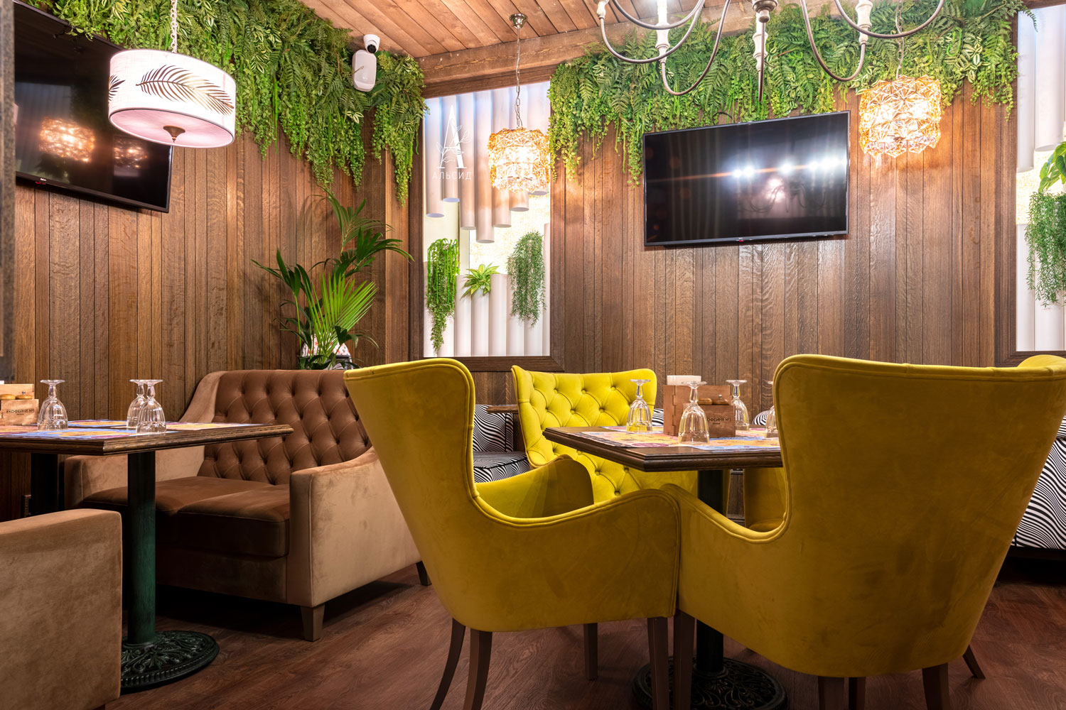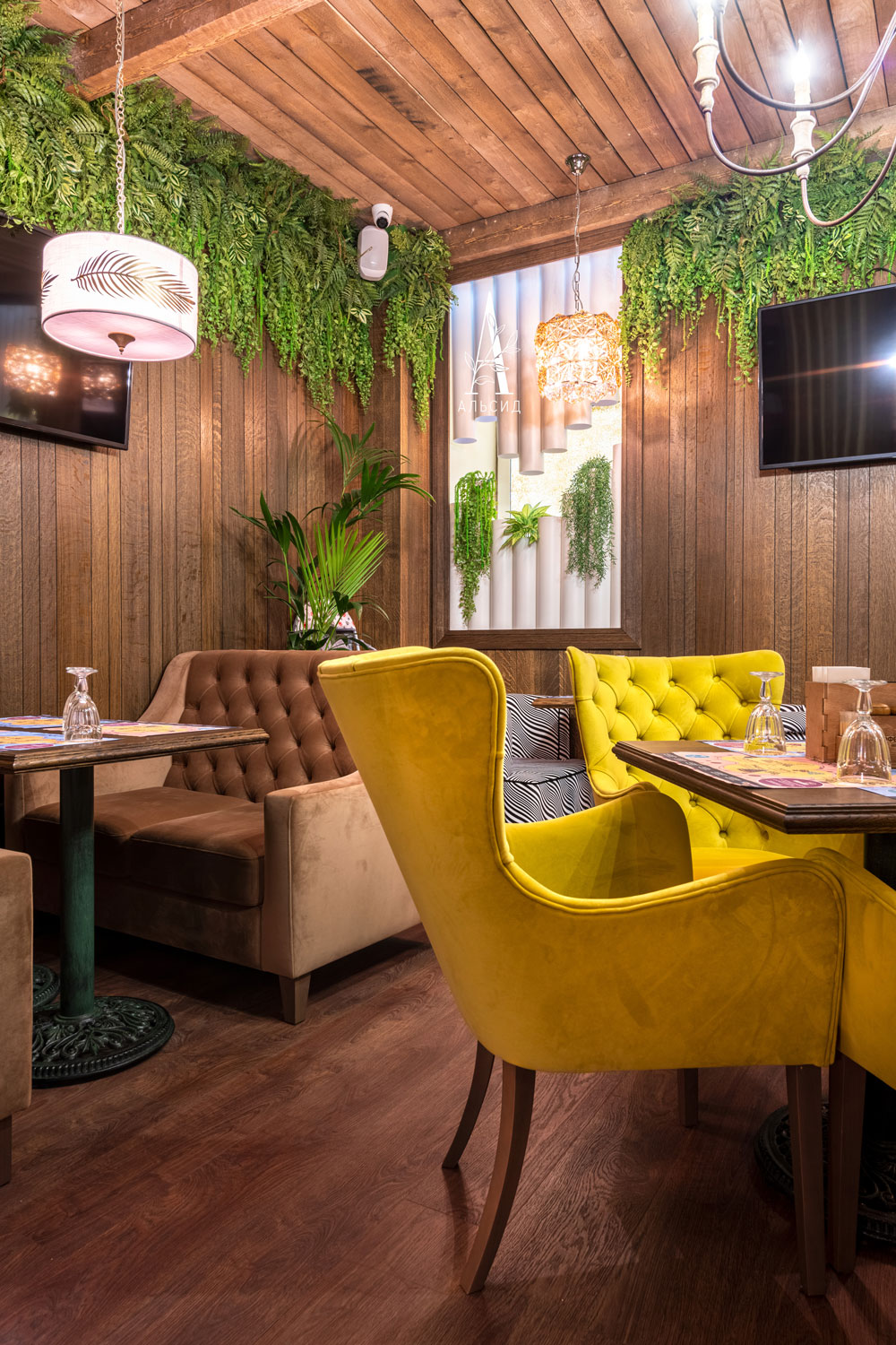 Кофейня №1 от знаменитой сети DEL MAR - настоящий оазис на Петроградской стороне: логотип и залы утопают в зелени даже при полном отсутствии естественного света! Все растения выглядят как настоящие благодаря уникальным сенсорным свойствам латексного пластика. Для оформления были выбраны различные ампельные растения, которые отлично драпируют стены и освежают атмосферу. А под логотип создали невероятную тропическую картину со мхом. ;