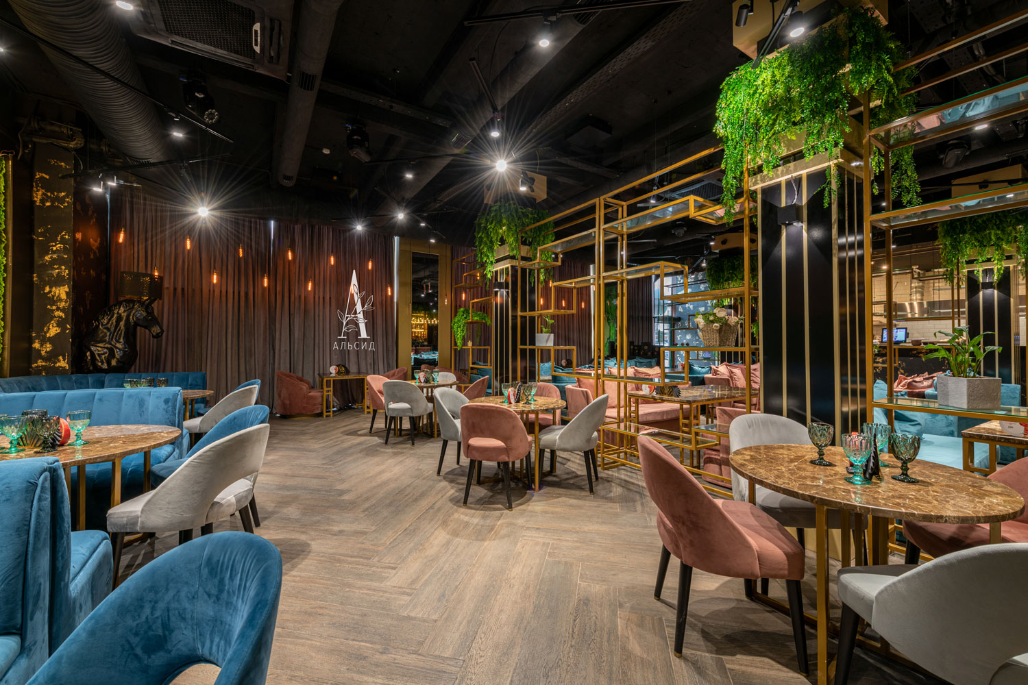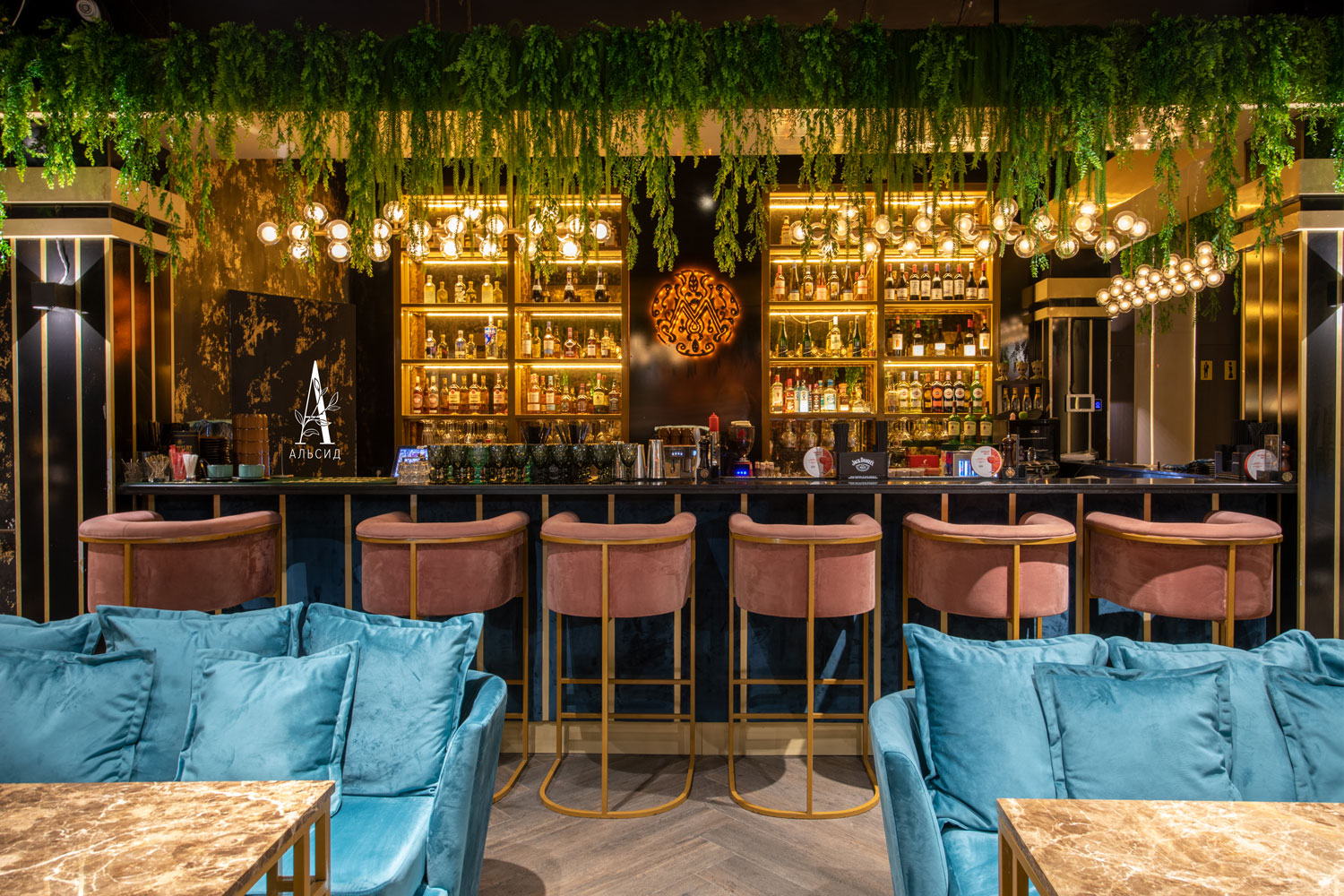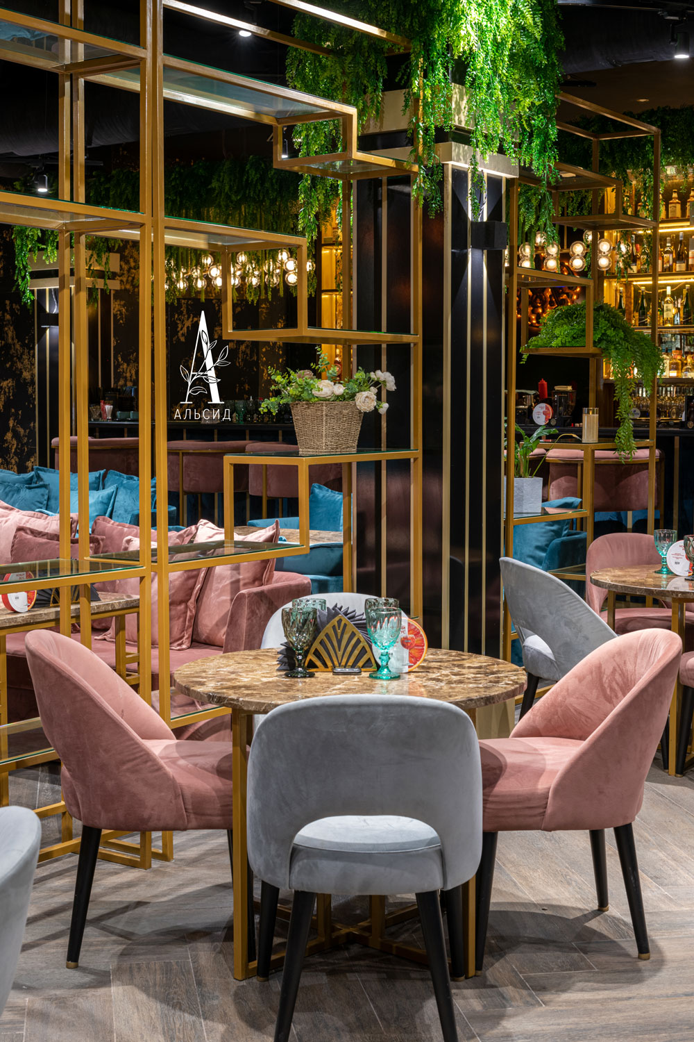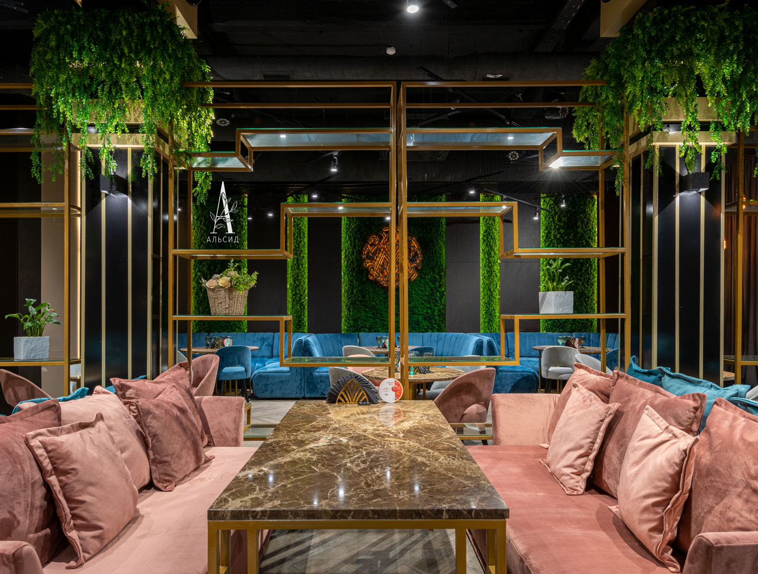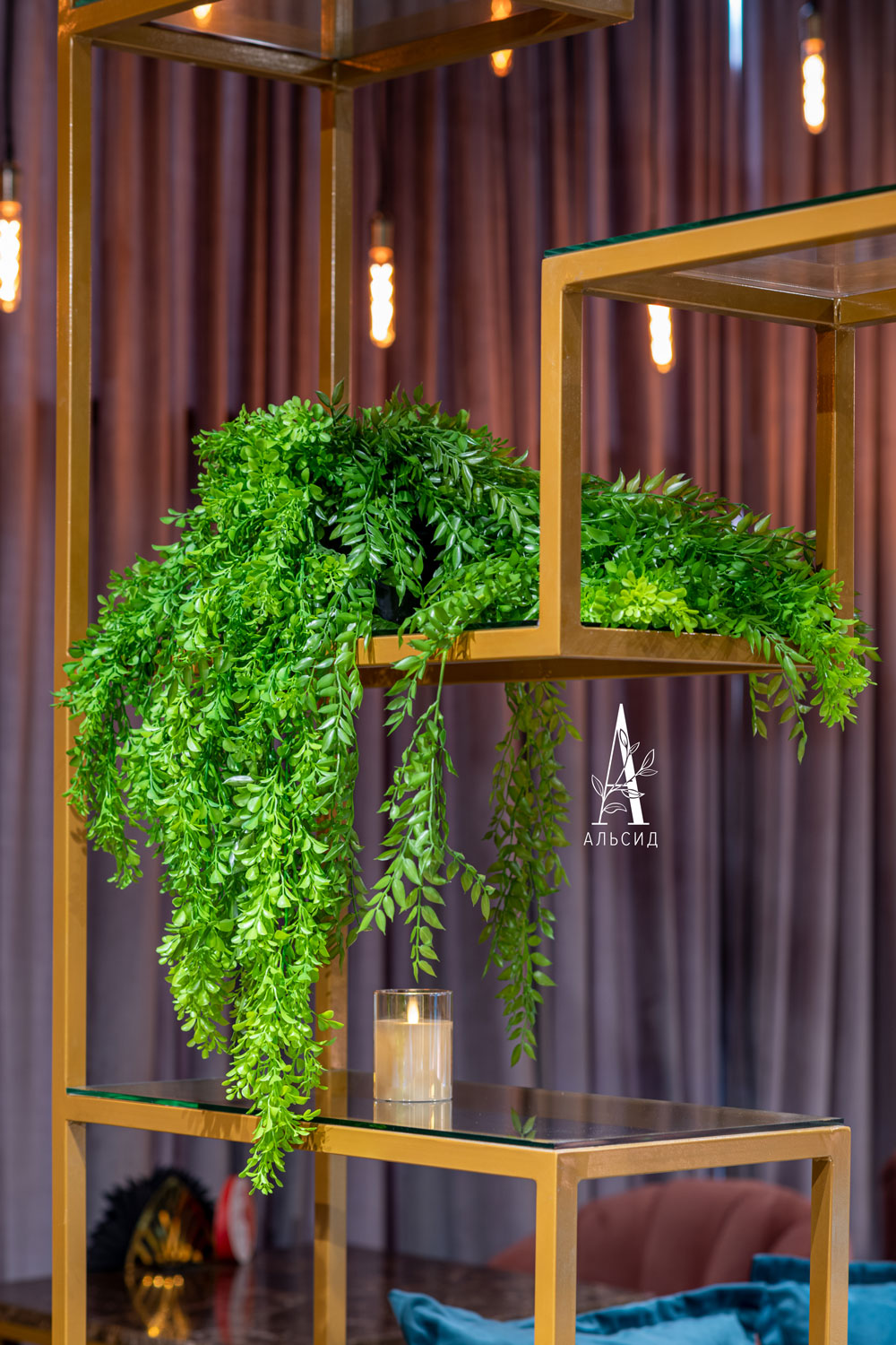 Оформление рестобара требовало точного совпадения с дизайн-проектом, где растения играют немаловажную роль. Композиции из искусственных растений (лиана с папоротником, лиана с оленьими рожками, микс из ампельных растений) идеально подходят для темного помещения с приглушенным светом, который необходим для вечерней расслабляющей атмосферы. Большая тропическая фитостена в зоне ресепшн сразу привлекает внимание и освежает интерьер. ; ;