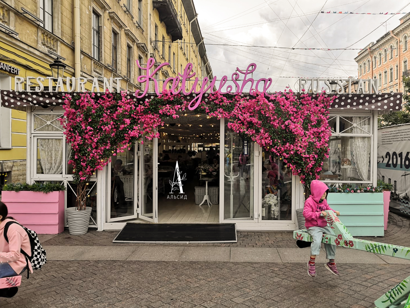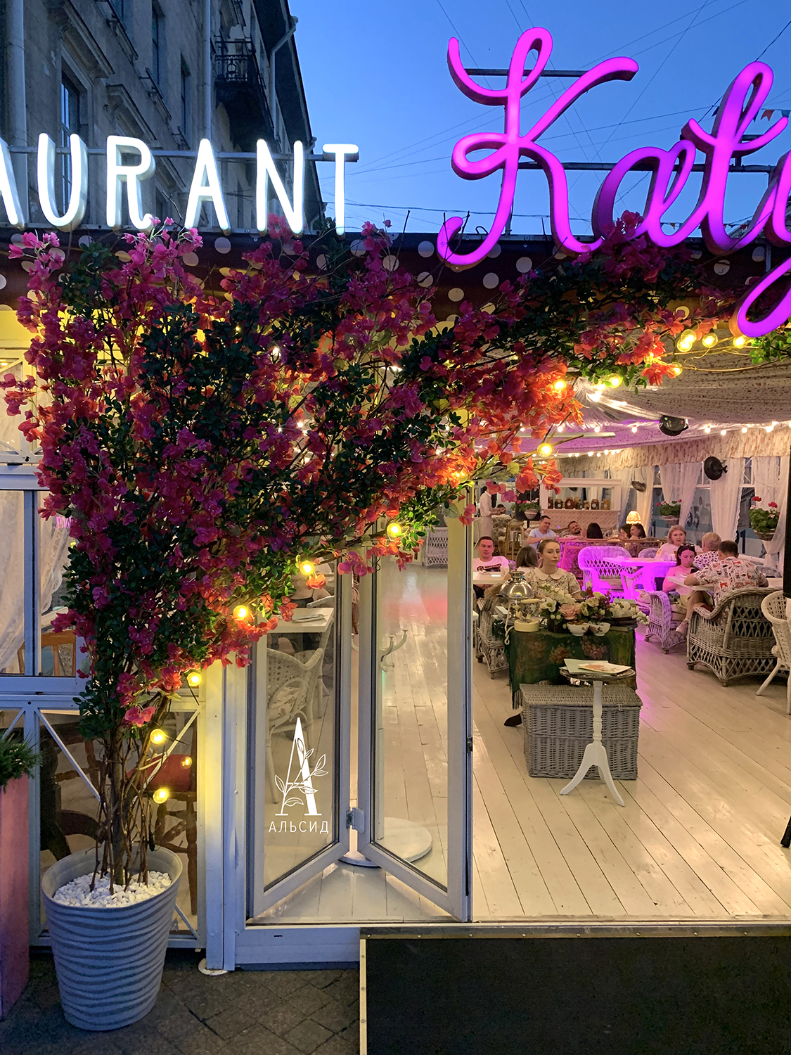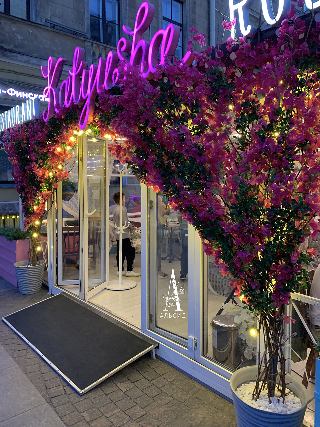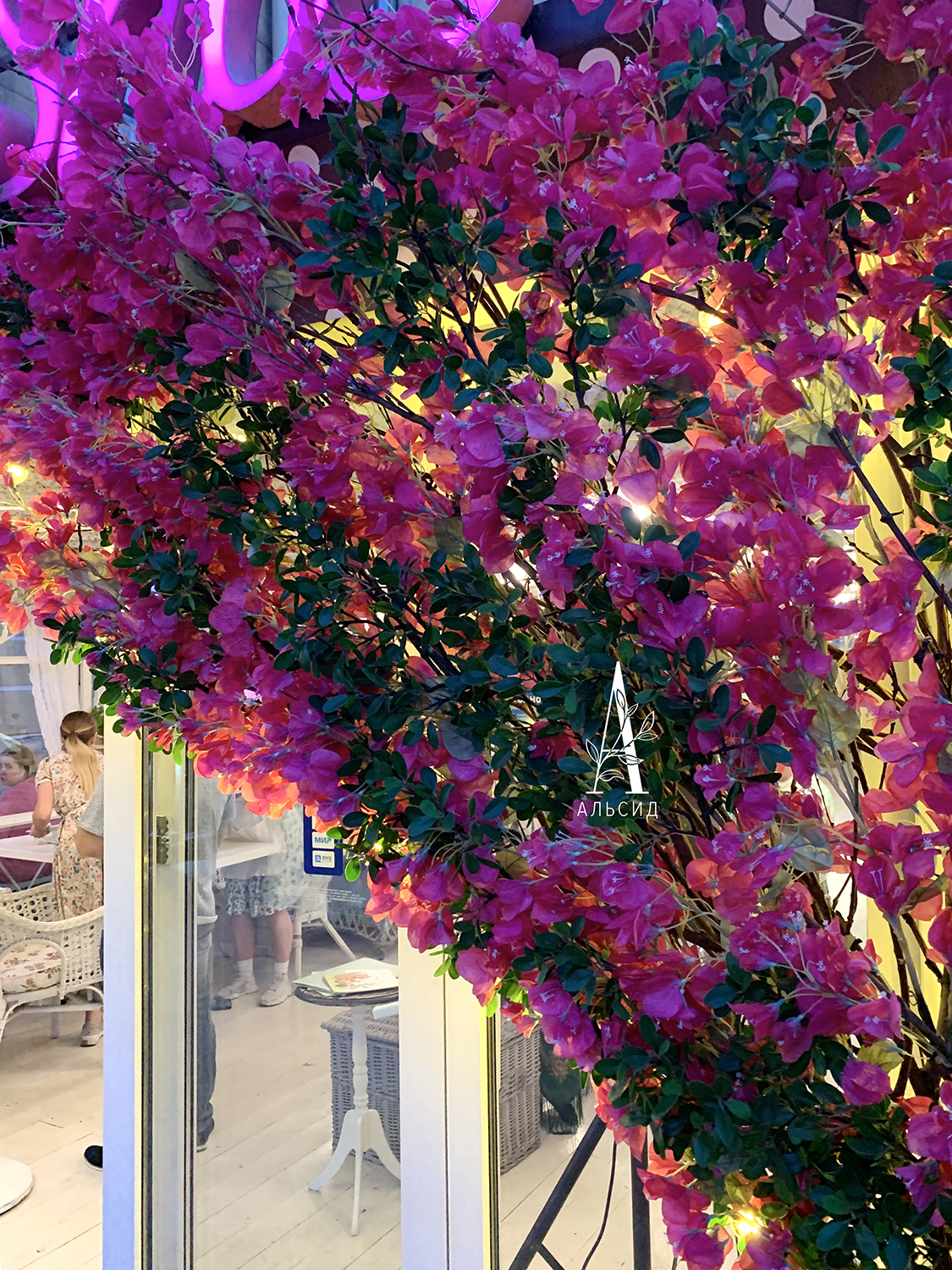 Бугенвиллею можно использовать при оформлении стен, а также для создания арок над порталами. Внешние характеристики растения позволяют довольно компактно и эффектно расположить композицию на стене стелющимися веточками с ярким цветением.;